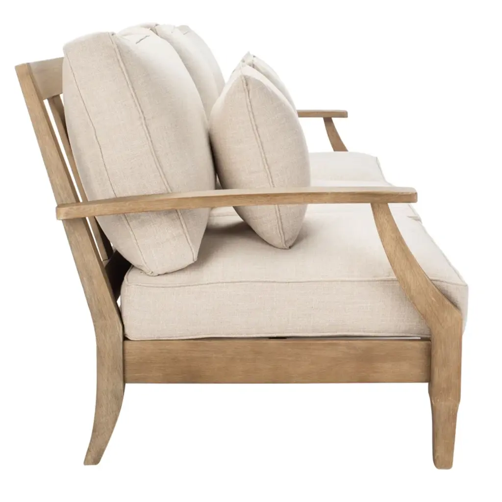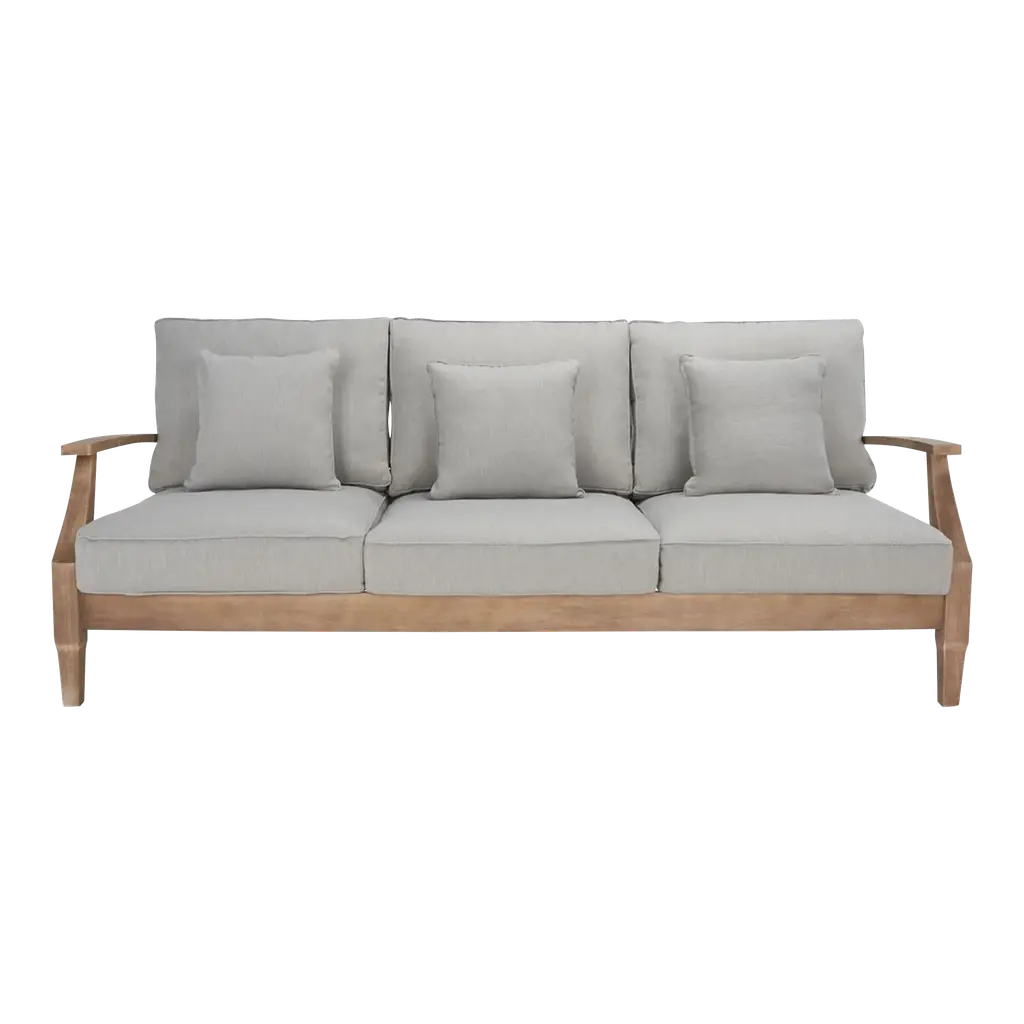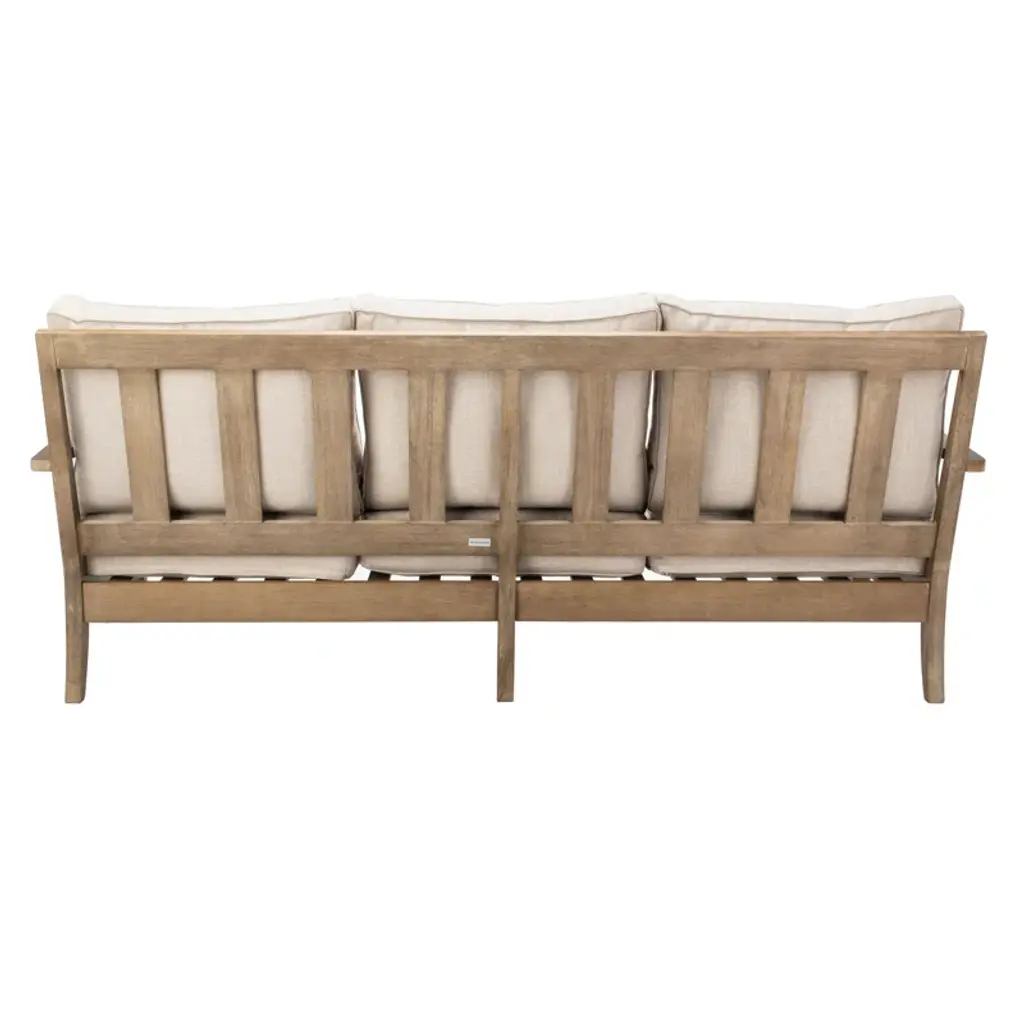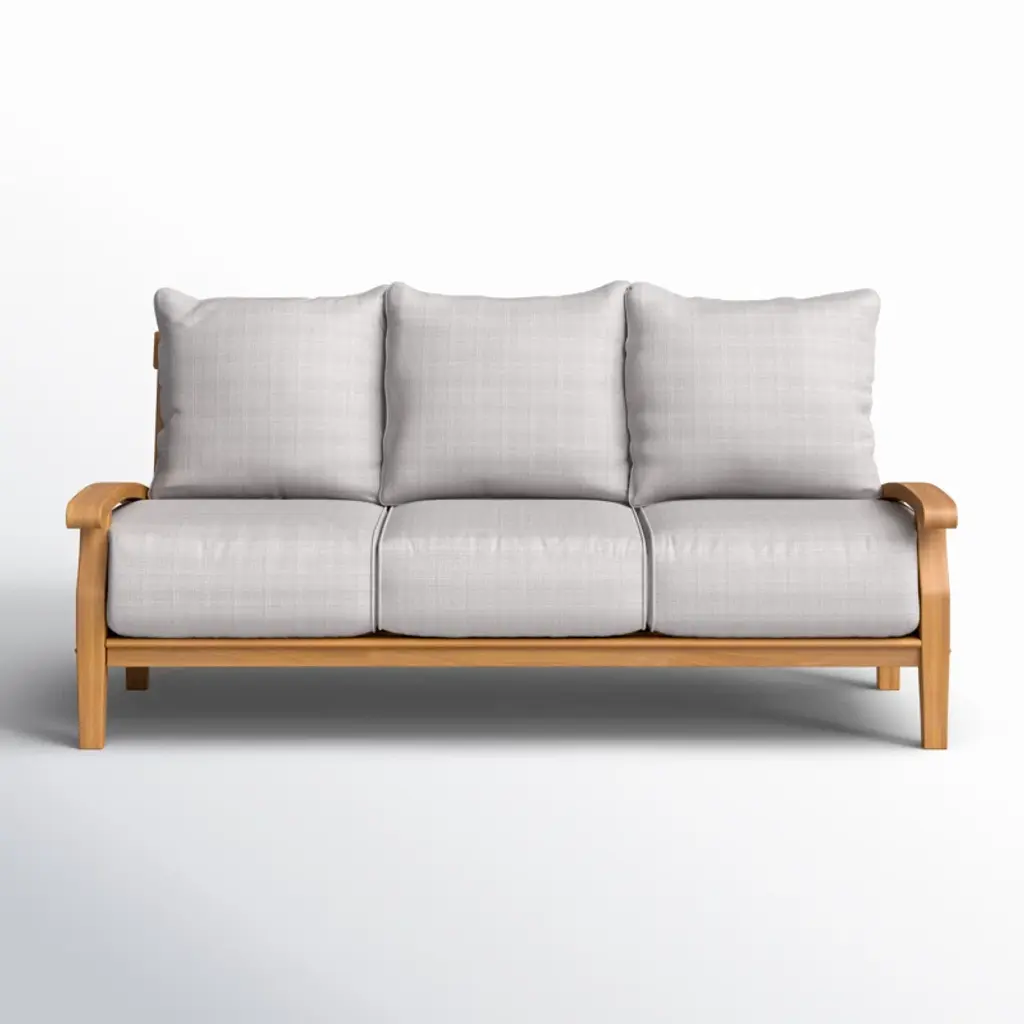 The lavish look of coastal villa decor comes to any outdoor patio, porch, or backyard deck with the Samya patio sofa. With ample seating for festive outdoor soirees or relaxing under the stars, Samya boasts smooth curves and shapely angles in a eucalyptus frame with plush, all-weather Olefin cushions adding luxury and comfort season after season.