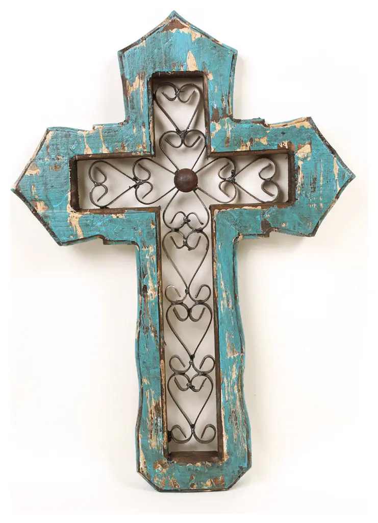 San Antonio Wall Cross-Handmade-Solid Wood-Hand Painted, Turquoise