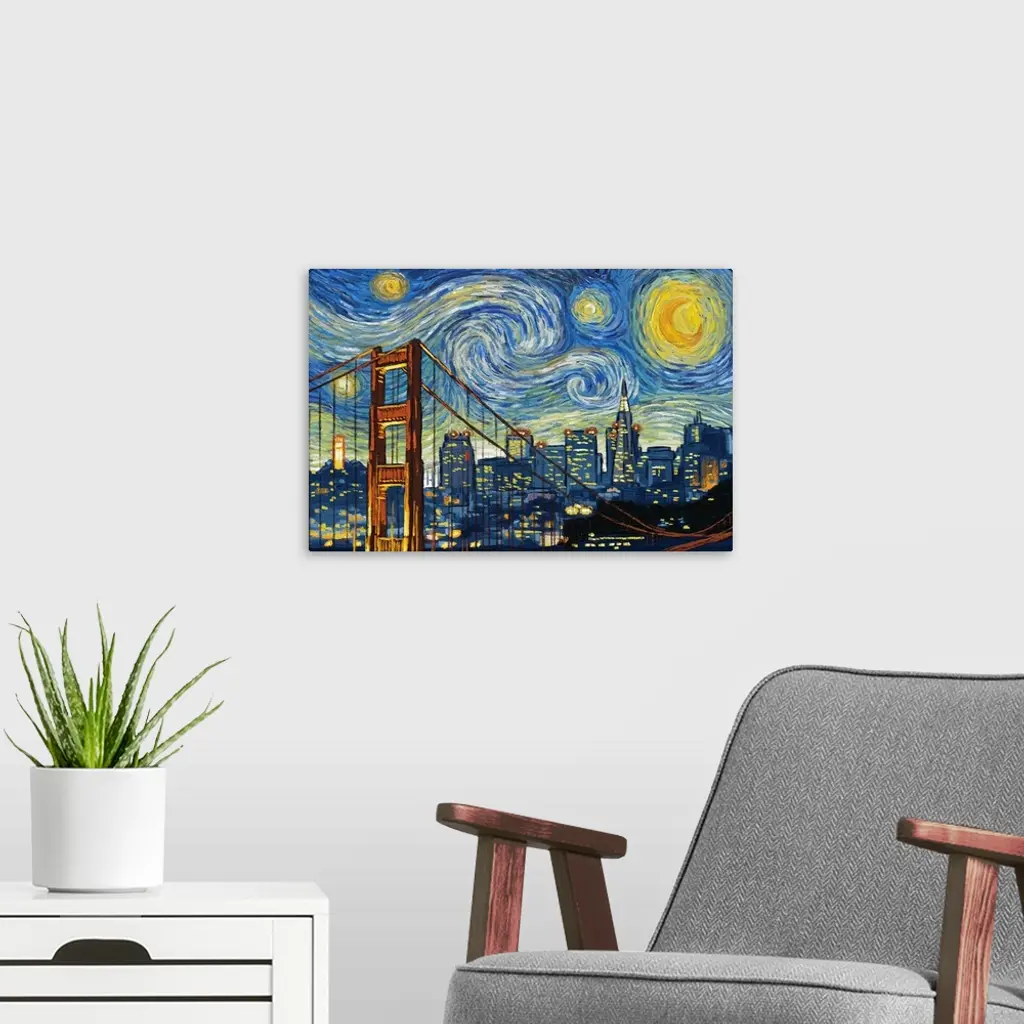 San Francisco, California - Starry Night City Series wall art for home and office decor. Discover canvas art prints, photos, mural, big canvas art and framed wall art in GreatBigCanvas.com's varied collections.