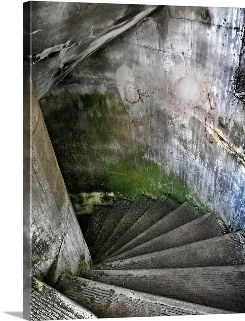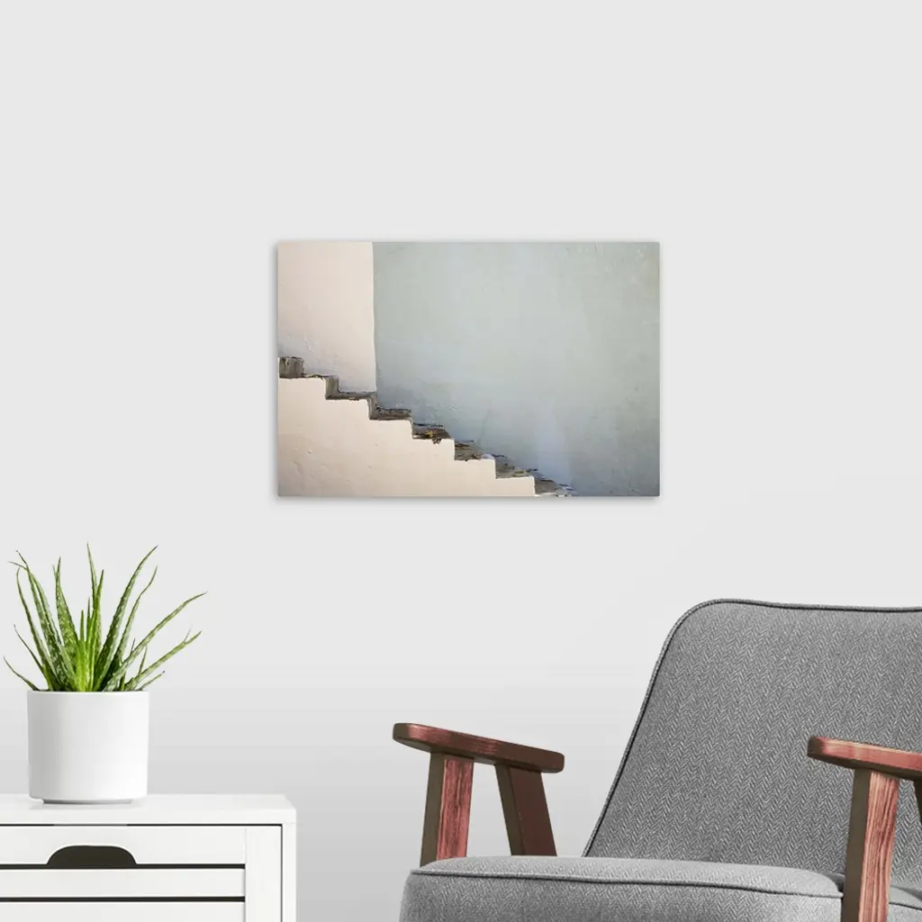San Juan, Puerto Rico - Exterior concrete steps are going up the side of a building. Horizontal shot.