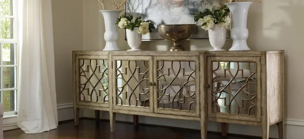 Pursue serenity at home with the Sanctuary rectangular mirrored console table. Create your own personal sanctuary, a special place where you can experience comfort within. The mirrored doors are sure to complement your existing furniture for a stunning overall design.