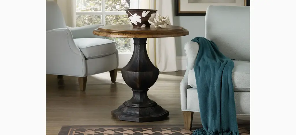 Pursue serenity at home with the Sanctuary round accent table. Create your own personal sanctuary, a special place where you can experience comfort within. Its pecky hickory veneers are sure to complement your living room furniture for a stunning overall design.