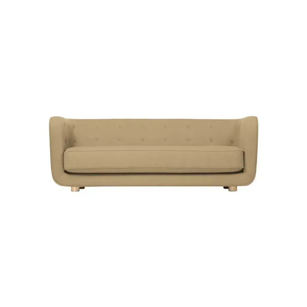 Sand and natural oak raf simons vidar 3 vilhelm sofa by lassen dimensions: w 217 x d 88 x h 80 cm materials: textile, oak. Vilhelm is a beautiful padded 3-seater sofa designed by flemming lassen in 1935. A sofa must be able to function in several ways. It should invite calm and contemplation. Create a private space you can hide in and at the same time invite to life and play. It must be able to withstand sitting on the backrest or on the armrests and then it must be able to stand in the middle of the room if you want to. In addition to being aesthetically beautiful and harmonious, the design makes absolute sense in relation to these parameters. By lassen is a danish design brand focused on iconic designs created by mogens and flemming lassen, founded by lassens’ relatives in 2008.