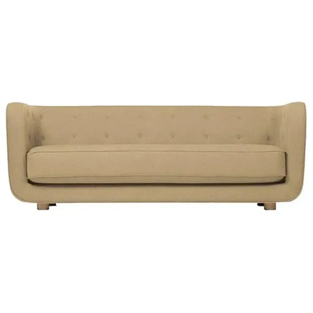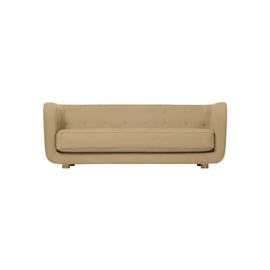 Sand and smoked oak raf simons vidar 3 vilhelm sofa by lassen dimensions: w 217 x d 88 x h 80 cm materials: textile, oak. Vilhelm is a beautiful padded 3-seater sofa designed by flemming lassen in 1935. A sofa must be able to function in several ways. It should invite calm and contemplation. Create a private space you can hide in and at the same time invite to life and play. It must be able to withstand sitting on the backrest or on the armrests and then it must be able to stand in the middle of the room if you want to. In addition to being aesthetically beautiful and harmonious, the design makes absolute sense in relation to these parameters. By lassen is a danish design brand focused on iconic designs created by mogens and flemming lassen, founded by lassens’ relatives in 2008.