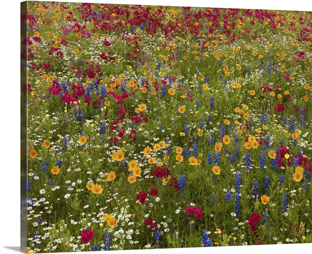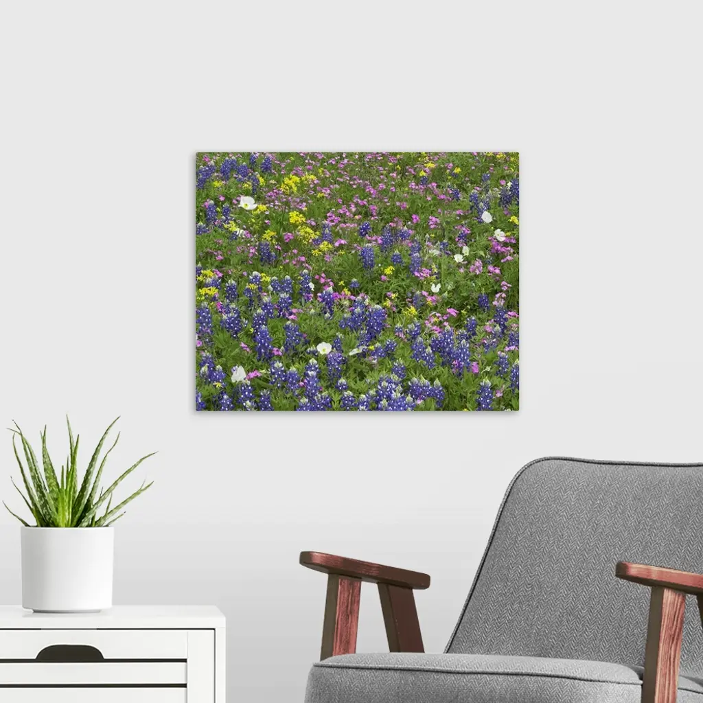 Sand Bluebonnet, Pointed Phlox, White Prickly Poppy, And Squaw-Weed Flowers