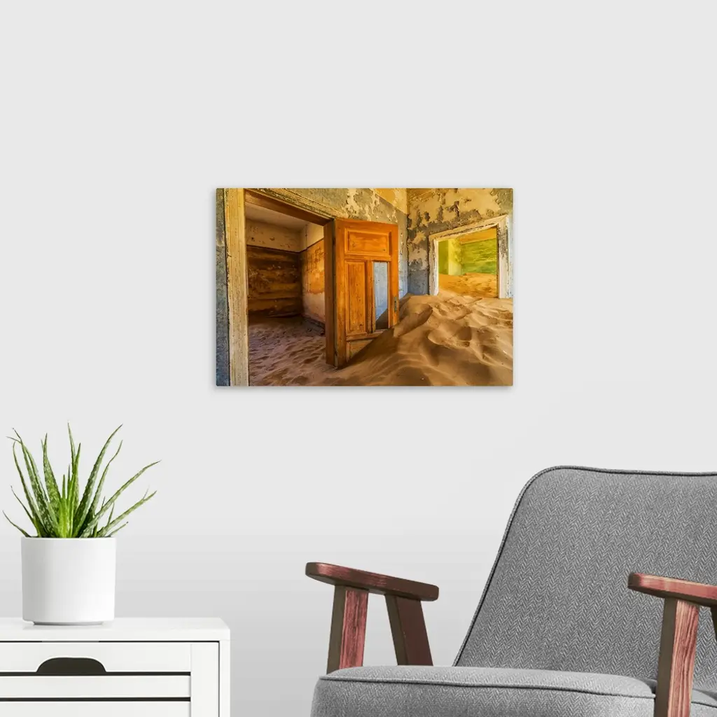 Sand In The Rooms Of A Colourful And Abandoned House, Kolmanskop, Namibia