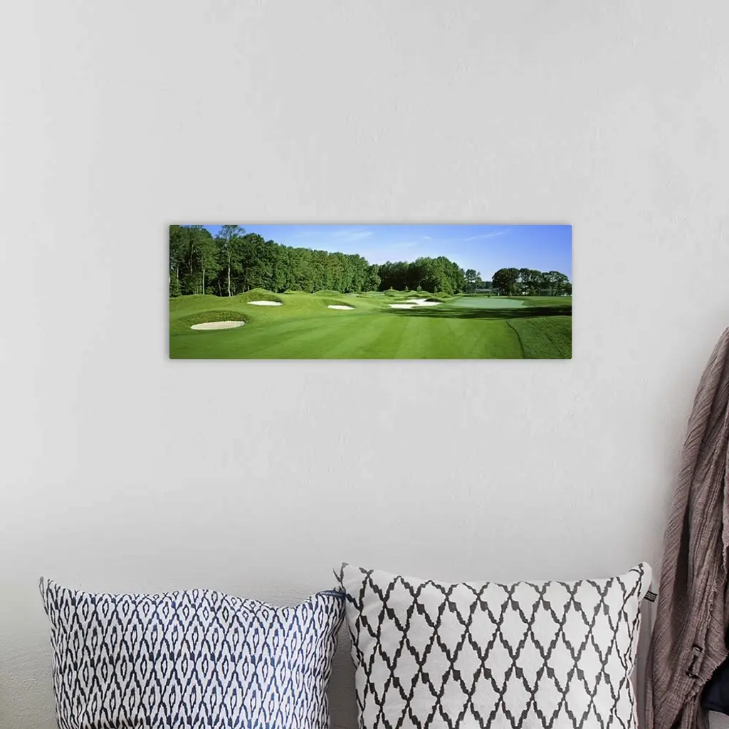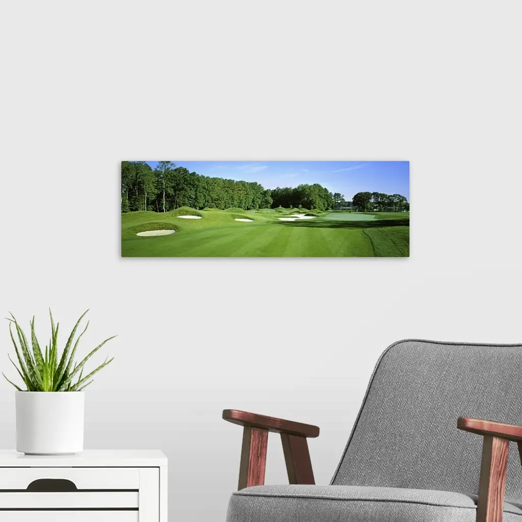 Sand traps in a golf course, River Run Golf Course, Berlin, Worcester County, Maryland wall art for home and office decor. Discover canvas art prints, photos, mural, big canvas art and framed wall art in GreatBigCanvas.com's varied collections.