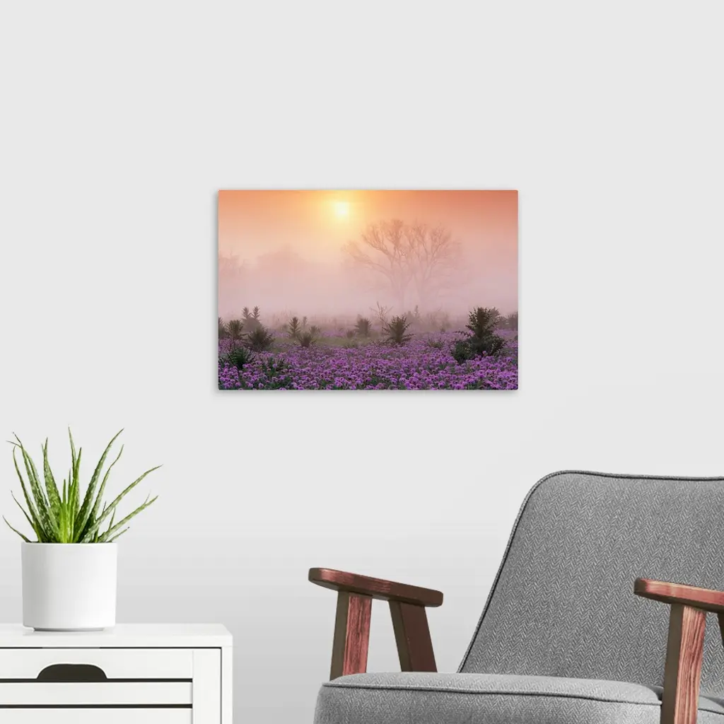 Sand Verbena Foggy Sunrise Hill Country Texas