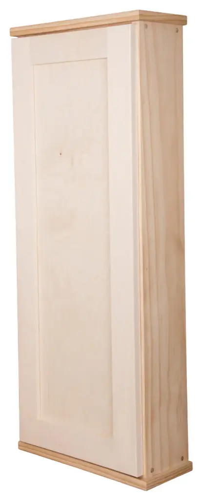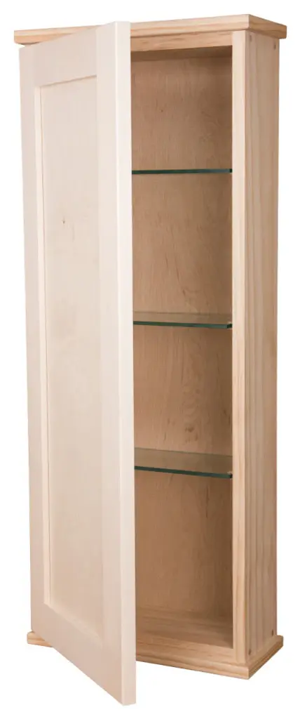 Mounts on the wall with steel mounting brackets inside for an easy installation. With two mounting methods, there is no need to worry about where the studs are in the wall. Four fully adjustable glass shelves slide into our patented shelf supports so they don''t tip or rock. Shaker style panel door sits on concealed hinges with soft close feature, door is reversible so you can mount it to open either direction. Perfect as a medicine cabinet, spice cabinet, or storage cabinet anywhere. OVERALL Measurements are 37.5h x 15.25w x 8"d OVERALL. You''ll have nearly 7.25" of depth INSIDE the cabinet. Unfinished bare wood can be painted or stained as desired. Solid pine cabinet box with solid maple door. Proudly made in the USA.
