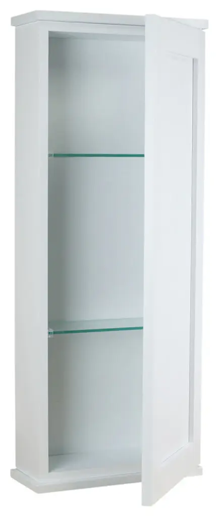 Mounts on the wall with steel mounting brackets inside for an easy installation. With two mounting methods, there is no need to worry about where the studs are in the wall. Three fully adjustable glass shelves slide into our patented shelf supports so they don''t tip or rock. Shaker style panel door sits on concealed hinges with soft close feature, door is reversible so you can mount it to open either direction. Perfect as a medicine cabinet, spice cabinet, or storage cabinet anywhere. OVERALL Measurements are 25.5h x 15.25w x 6.25"d OVERALL. You''ll have nearly 5.5" of depth INSIDE the cabinet. White enamel finish. Solid pine cabinet box with solid maple door. Proudly made in the USA.