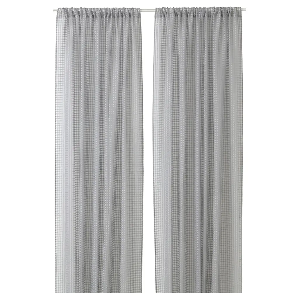SANDDÅDRA Sheer curtains, 1 pair - gray 57x98 ". The sheer curtains let the daylight through but provide privacy so they are perfect to use in a layered window solution. The rod pocket allows you to hang the curtains directly on a curtain rod. Includes: 2 sheer curtains.