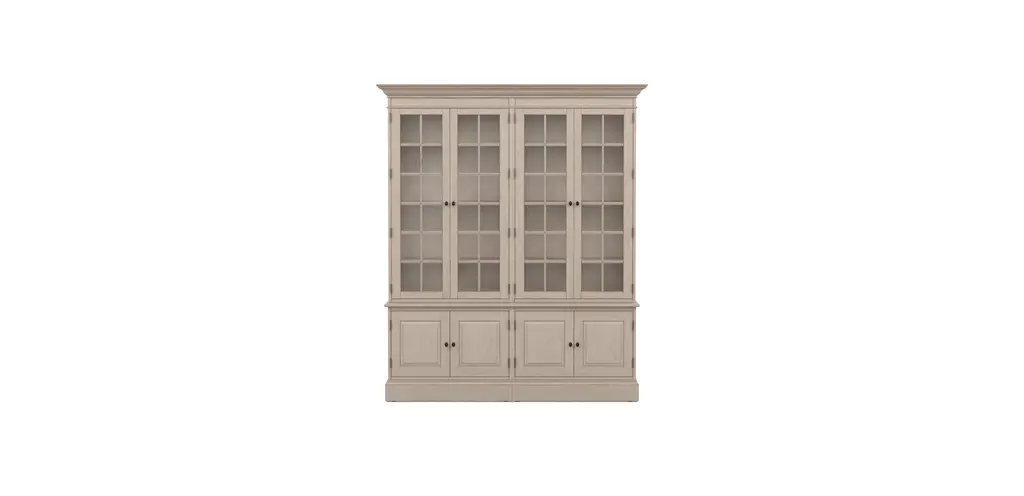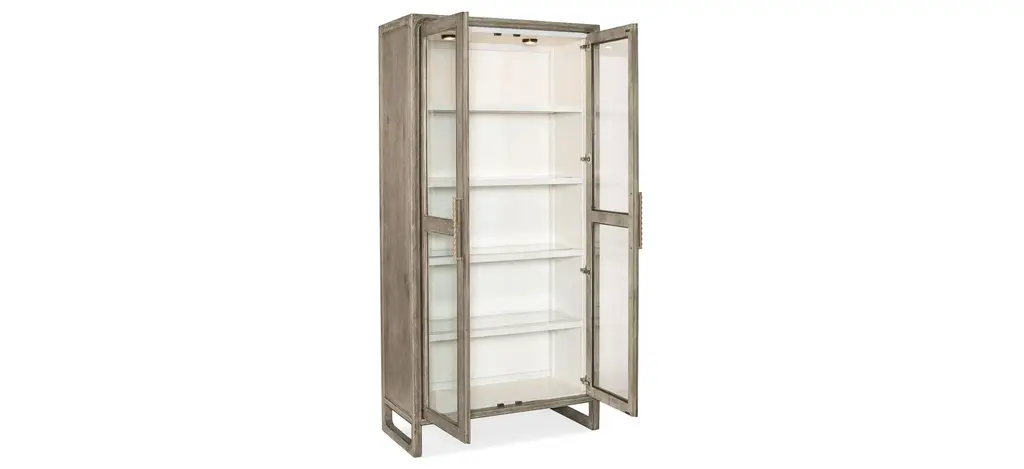 Designed to create a comfortable and inviting retreat within the home, the Sanderling Display Cabinet is defined by its casual finishes and variety of organic textures and materials that combine to deliver a relaxed aesthetic. Inspired by casual, waterfront living, the collection was designed to bring the relaxed aura of the outside in. White oak veneer delivers two key finishes, a whitewashed look and a weathered gray and is accented with sand blasted pine and soft white bronze metal details.