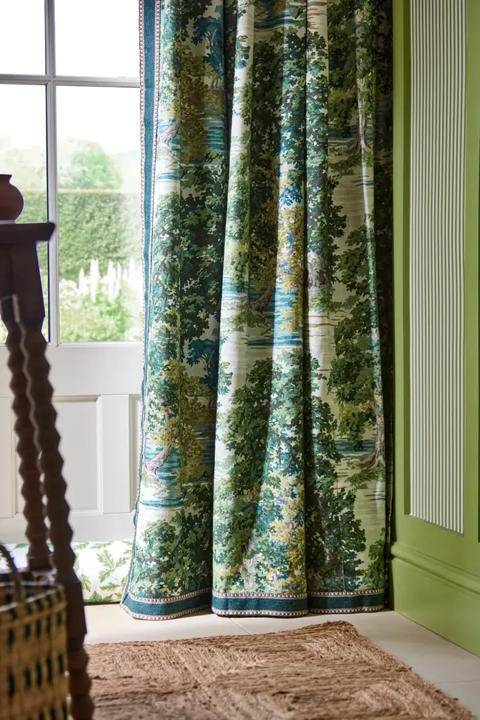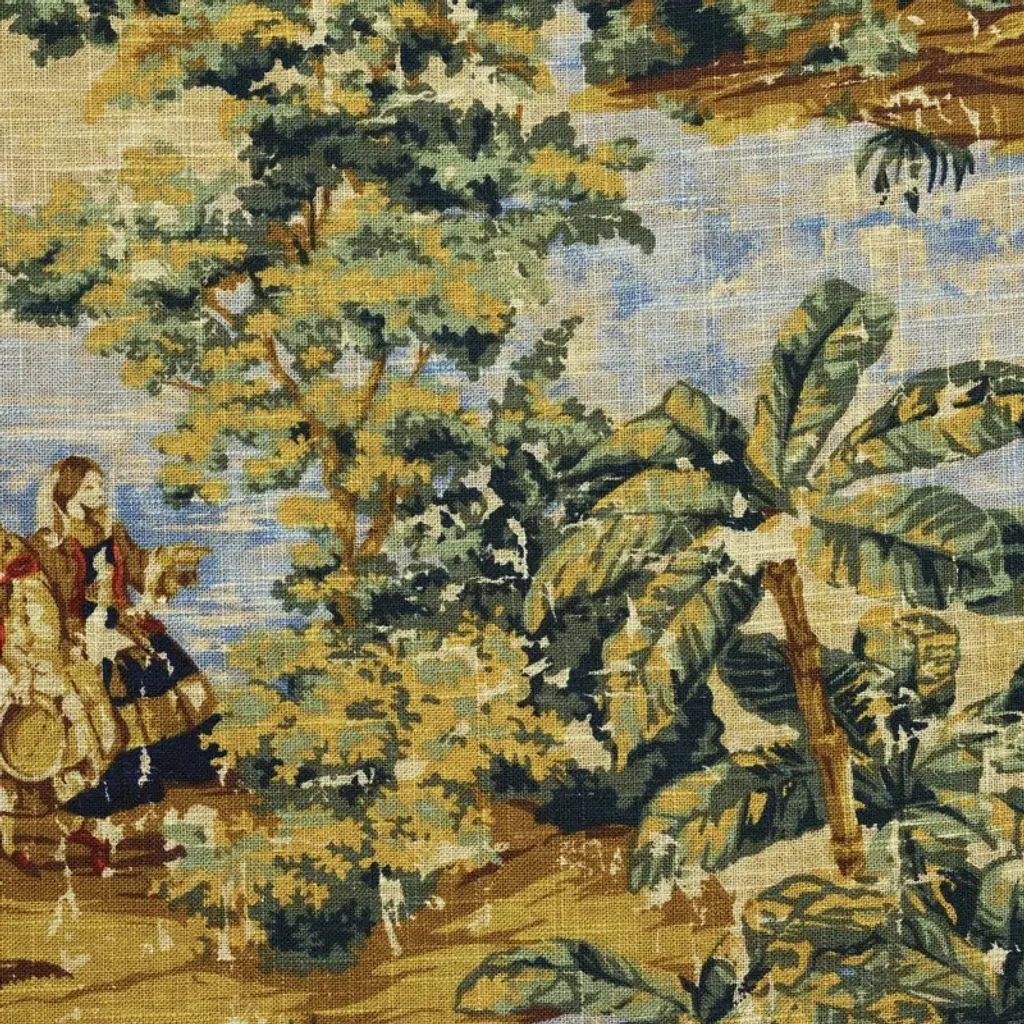 This impressionist scene of ancient trees and arched bowing branches creates a dense canopy that draws the eye towards a secluded glade. Offering a beautiful feeling of perspective and depth age old woodlands represent longevity life growth and strength. A diverse fabric layer up for a maximalist look or go natural to create a countryside feel. 82% Viscose 18% Linen. Sold by the yard. Part of the ARBORETUM FABRICS Collection. Vertical Repeat: 29.1732283464567 Horizontal Repeat: 27.007874015748 Aftercare Codes: No Machine Wash - SDC / No Ble / No tumb / C Iron / Iron Rev / SDC (Spec) This item is non-refundable, but swatches are available for purchase. Colors can vary from screen to screen; we recommend ordering a swatch before placing your full size purchase. For any questions, please reach out to swatches@chairish.com