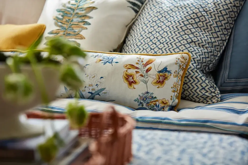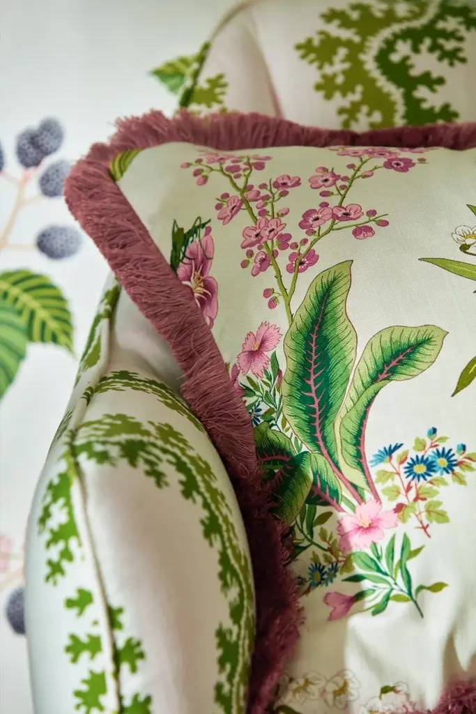 This finely detailed trail of stylised flowers is faithfully reinterpreted from an archive document. Meaning ‘forest clearing’ in Celtic it’s named after the gardens at Enys one of the earliest and most progressive in Cornwall. A pretty well-spaced design see if you can spot our charming grasshopper in his countryside home. 90% Cotton 10% Linen. Sold by the yard. Part of the ARBORETUM FABRICS Collection. Vertical Repeat: 24.5669291338583 Horizontal Repeat: 8.97637795275591 Aftercare Codes: No Machine Wash - SDC / No Ble / No tumb / C Iron / Iron Rev / SDC (Spec) This item is non-refundable, but swatches are available for purchase. Colors can vary from screen to screen; we recommend ordering a swatch before placing your full size purchase. For any questions, please reach out to swatches@chairish.com