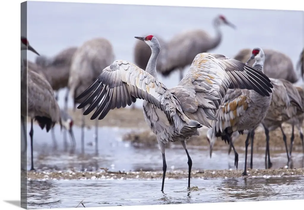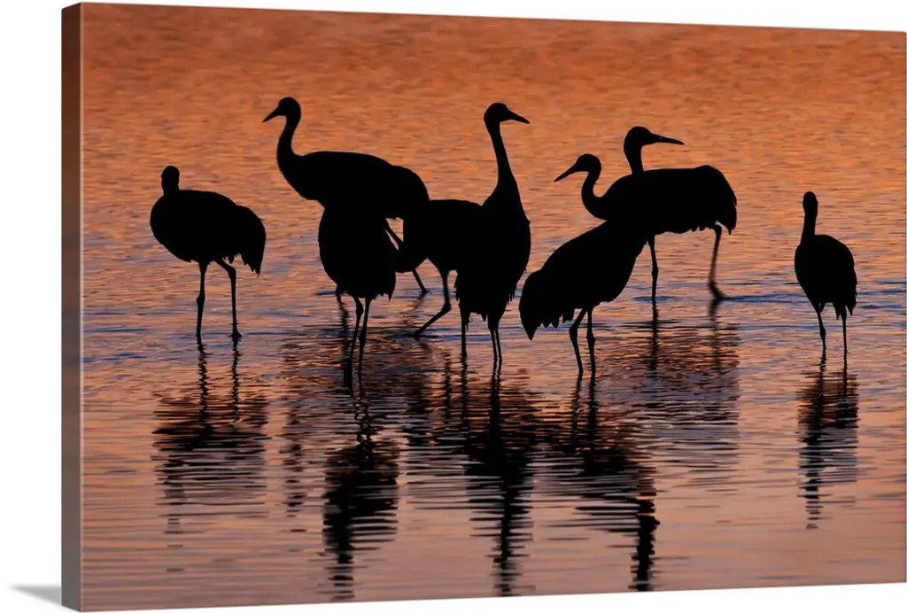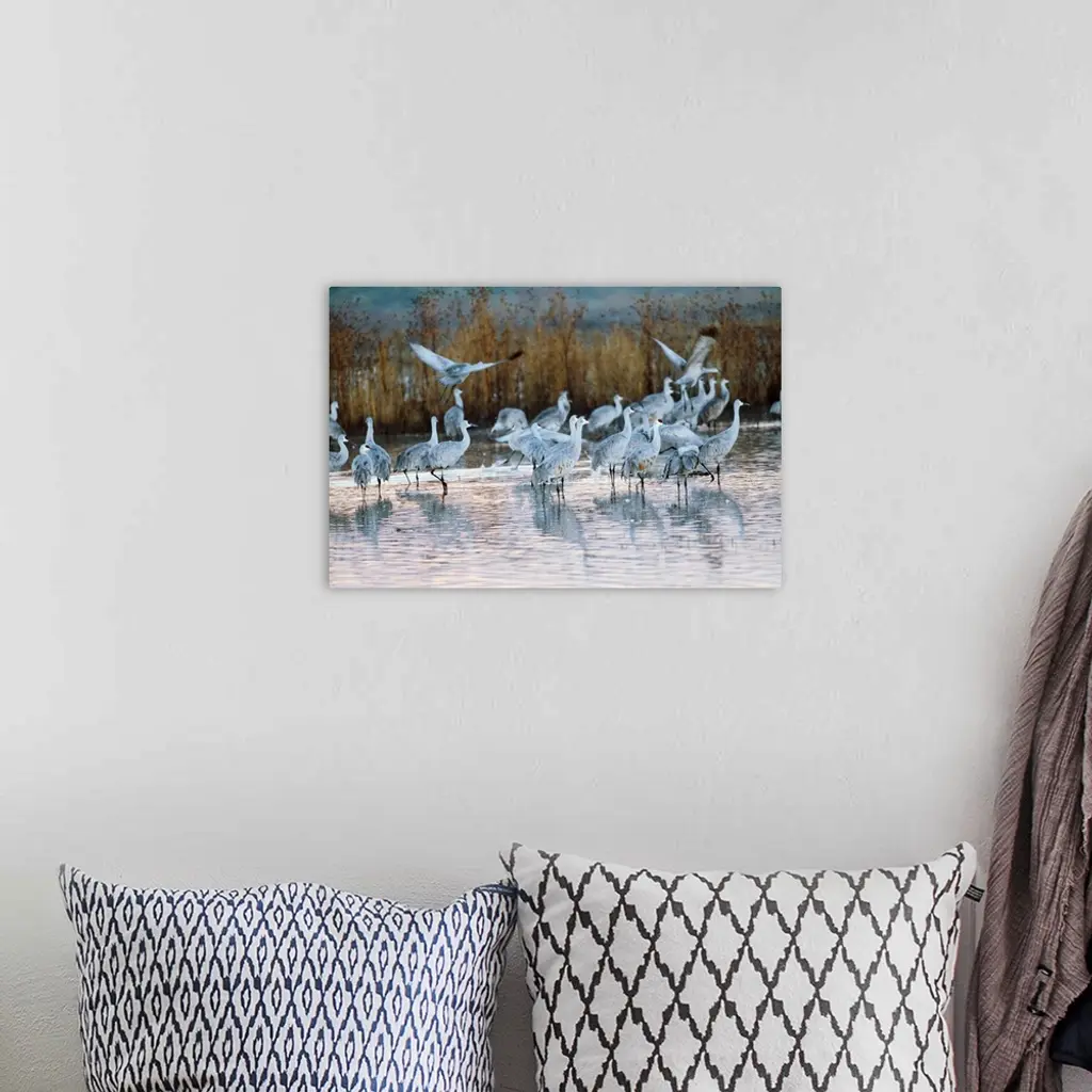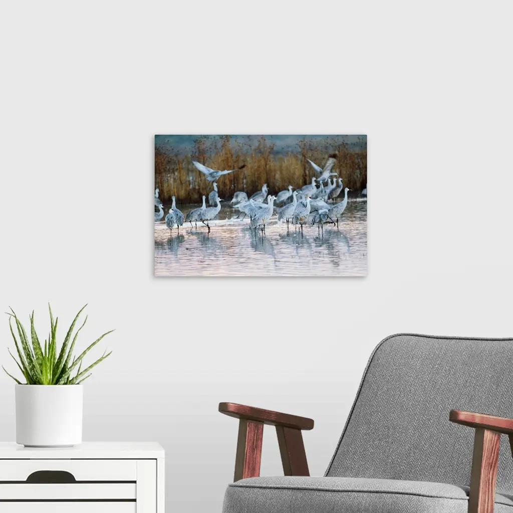 Sandhill cranes in water, Bosque Del Apache, New Mexico wall art for home and office decor. Discover canvas art prints, photos, mural, big canvas art and framed wall art in GreatBigCanvas.com's varied collections.