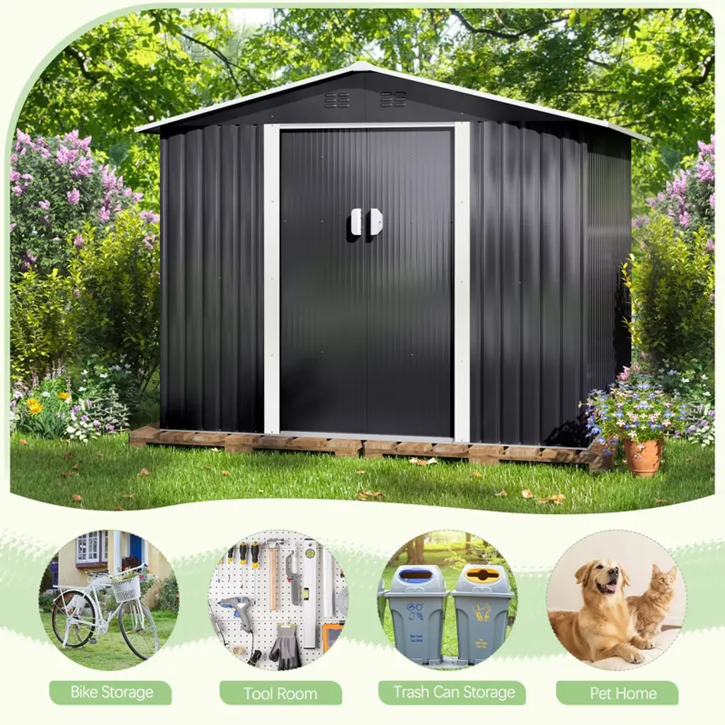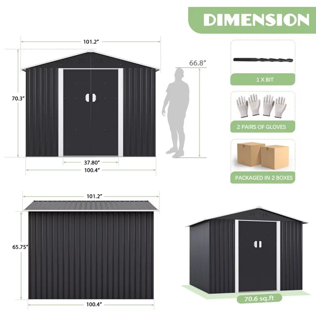 Sandinrayli 8.4 Ft. W X 8.4 Ft. D Outdoor Storage Building Metal Storage Shed Garden Tool Storage With Sliding Door (70.56 Sq. Ft.), Gray