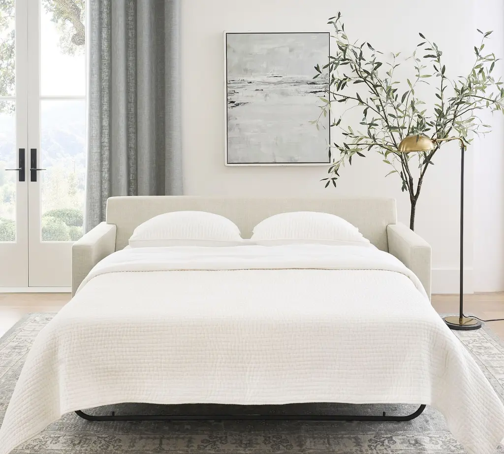 Tailored in classic forms with small-space living in mind, Sanford offers seating for any floorplan. The high back, slim arms, and loose cushions are the perfect combination of smart proportions and plush comfort. More than just a cozy spot to sit, we love that it's also folds out into a bed.