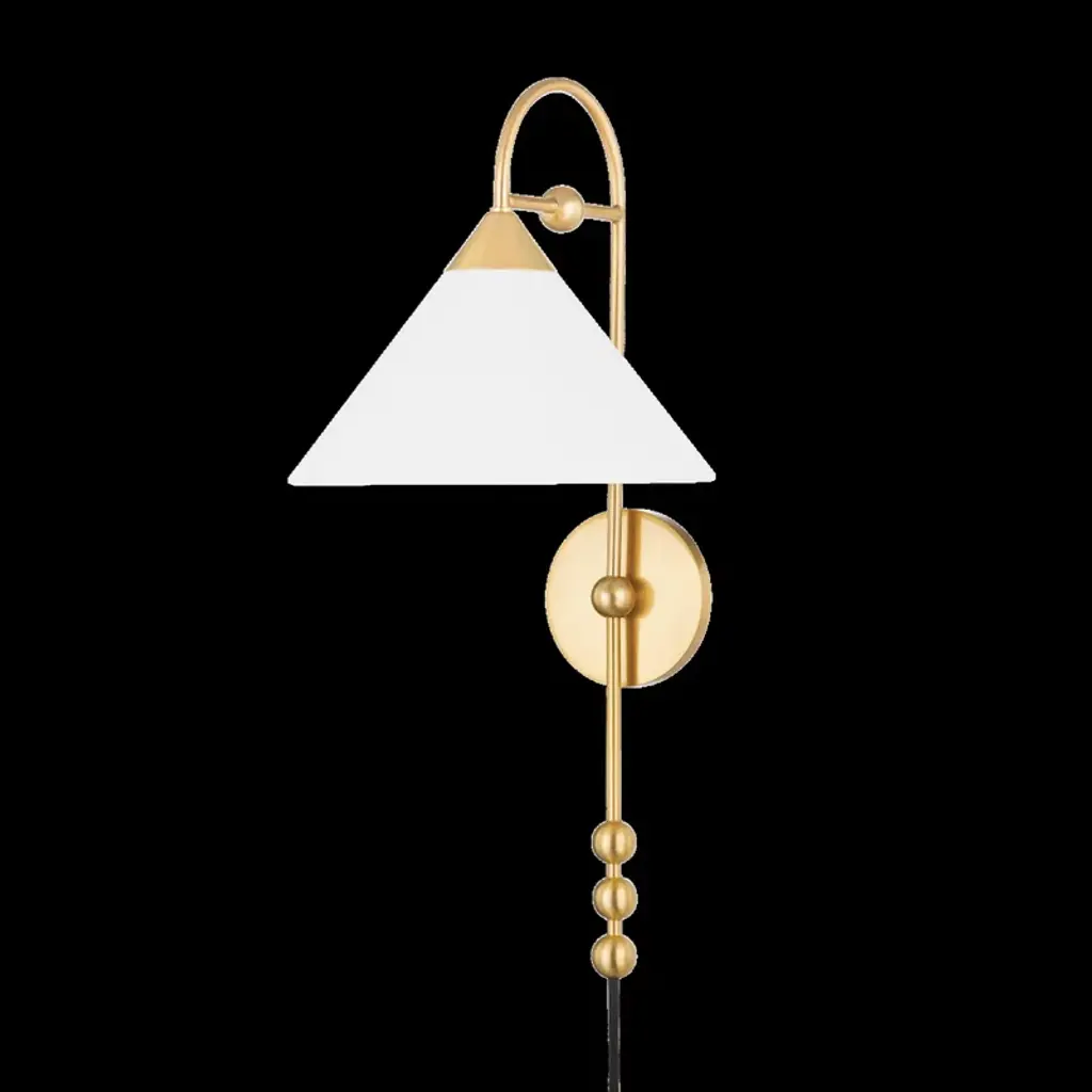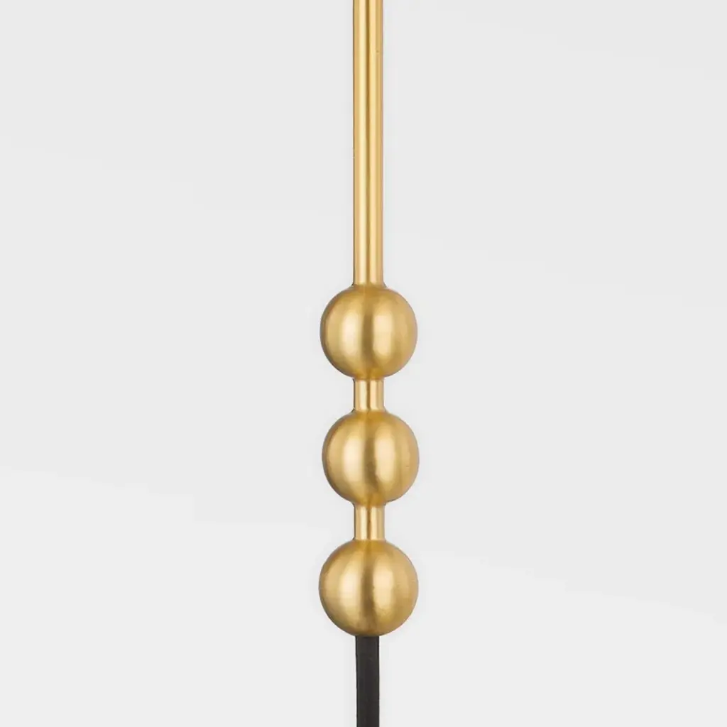 Sang is jewelry-inspired lighting at its finest. The sleek, curved arms and decorative gold balls, both solo and in groups of three, give the overall silhouette a definite drop earring vibe. Finished in aged brass with a white linen shade and available as a pendant, wall sconce or floor lamp, there's a Sang to accessorize every room.