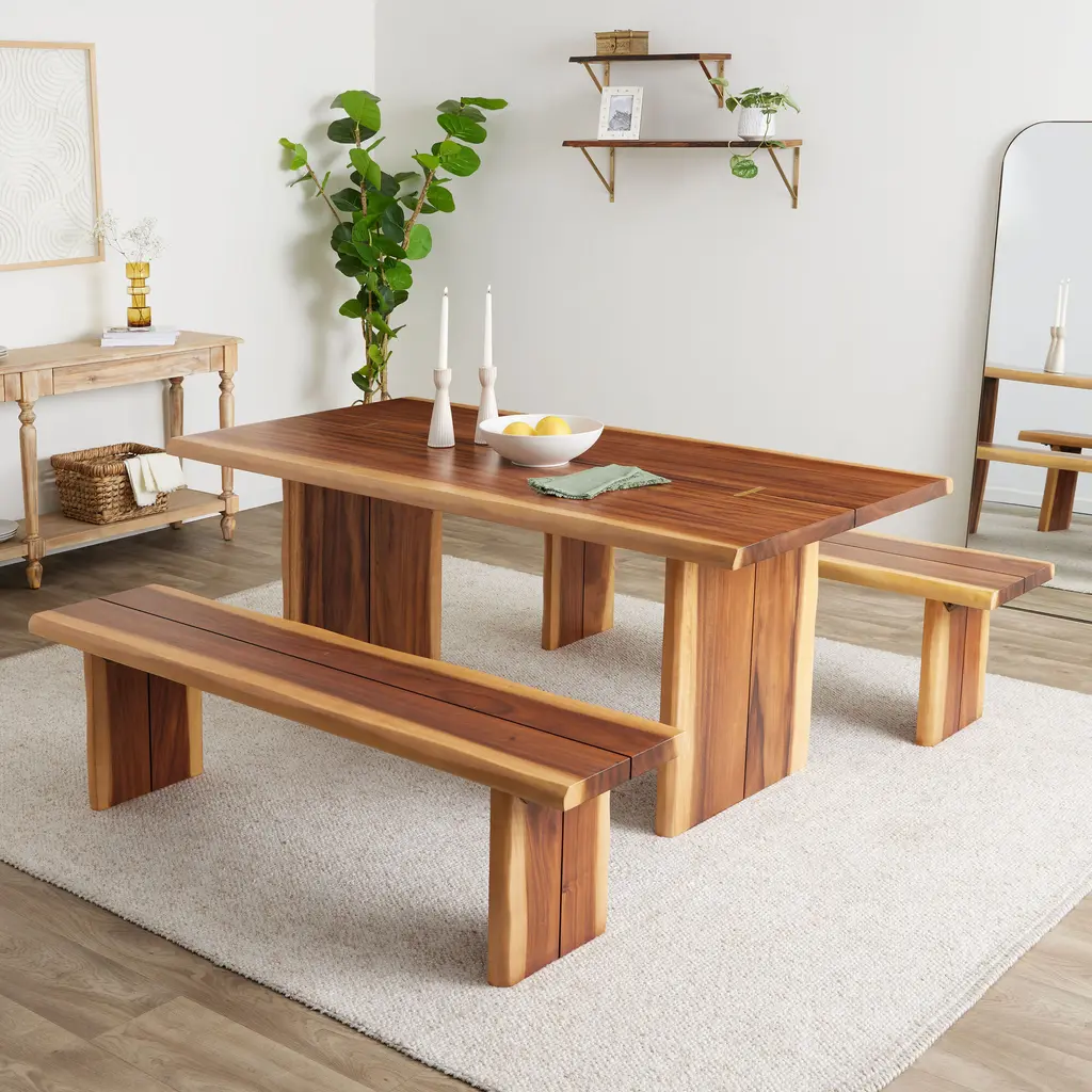 Sansur Rustic Pecan Live Edge Wood Dining Bench