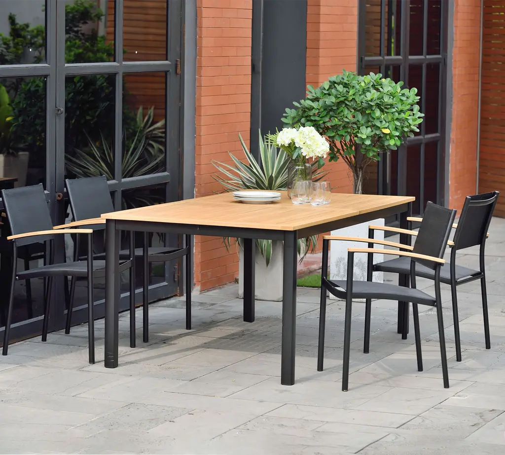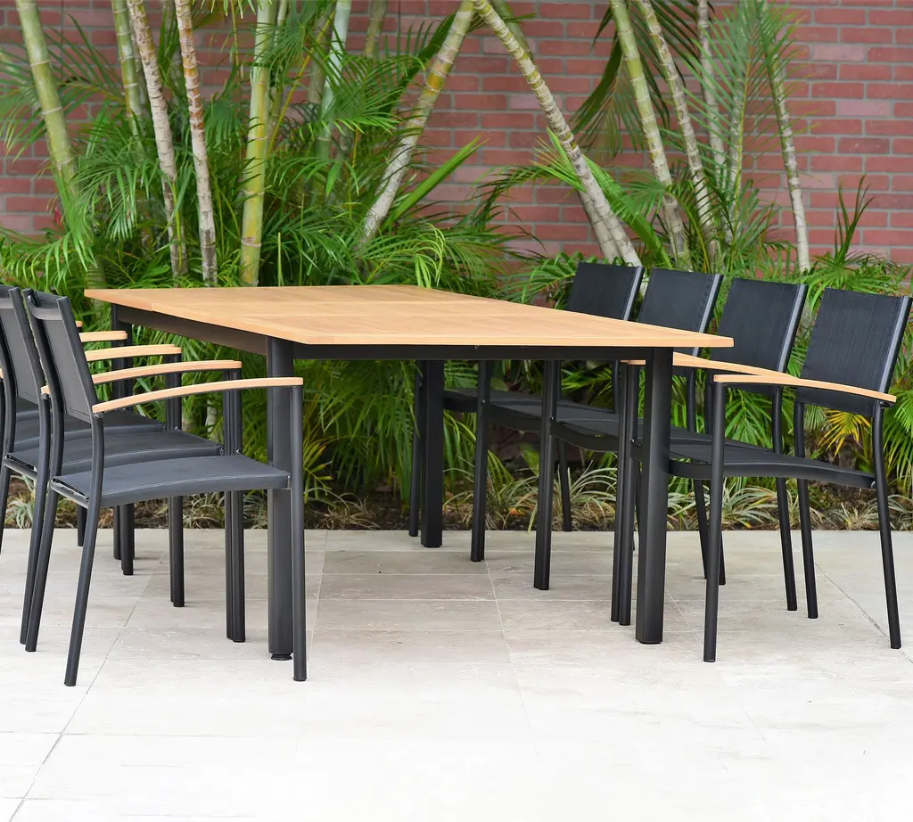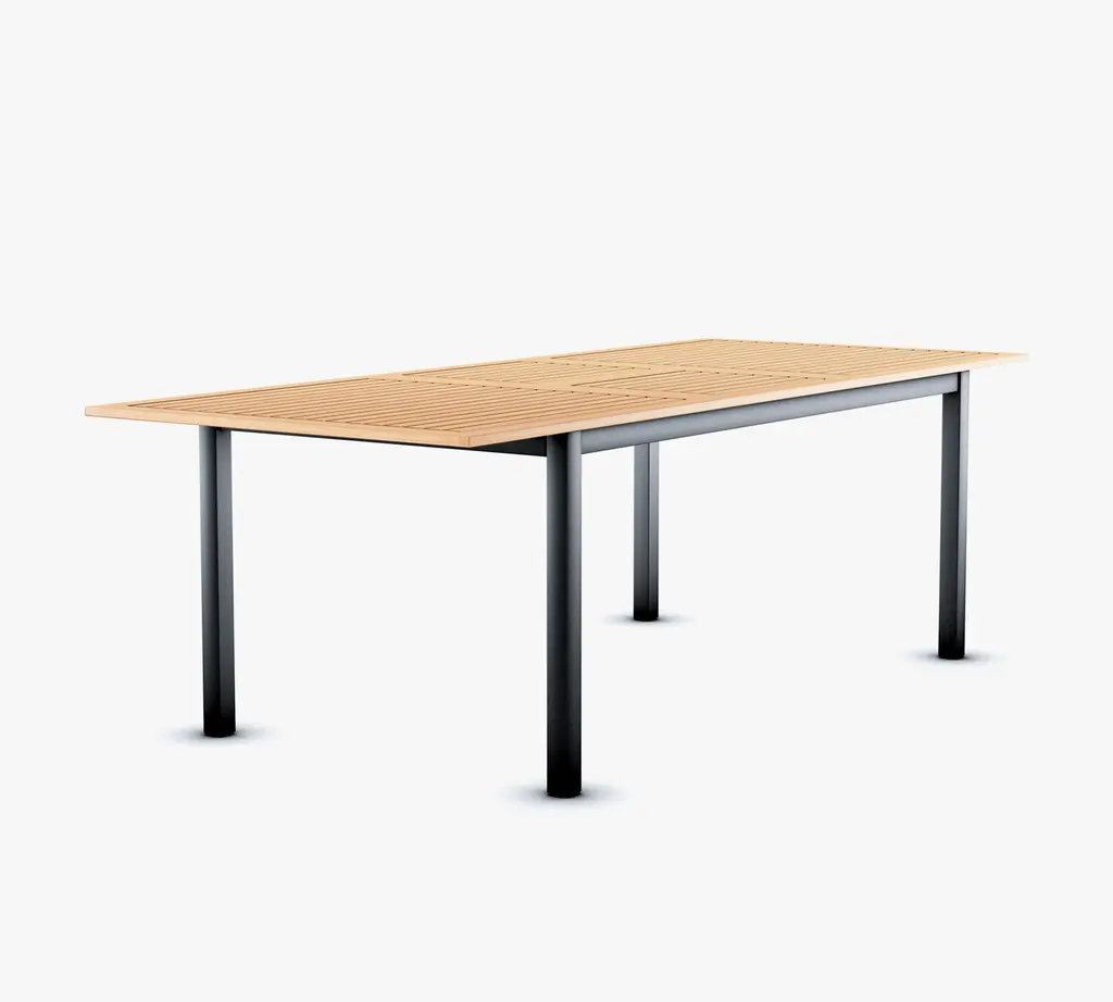 With a mix of classic eucalyptus and ultra-durable, rust-resistant powder coated aluminum, plus extendable leaves for extra elbow room, the Santa Ana Extending Dining Table is ready for years of alfresco entertaining.