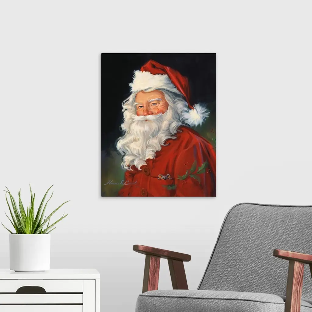 Portrait of Santa Claus with a dark background.