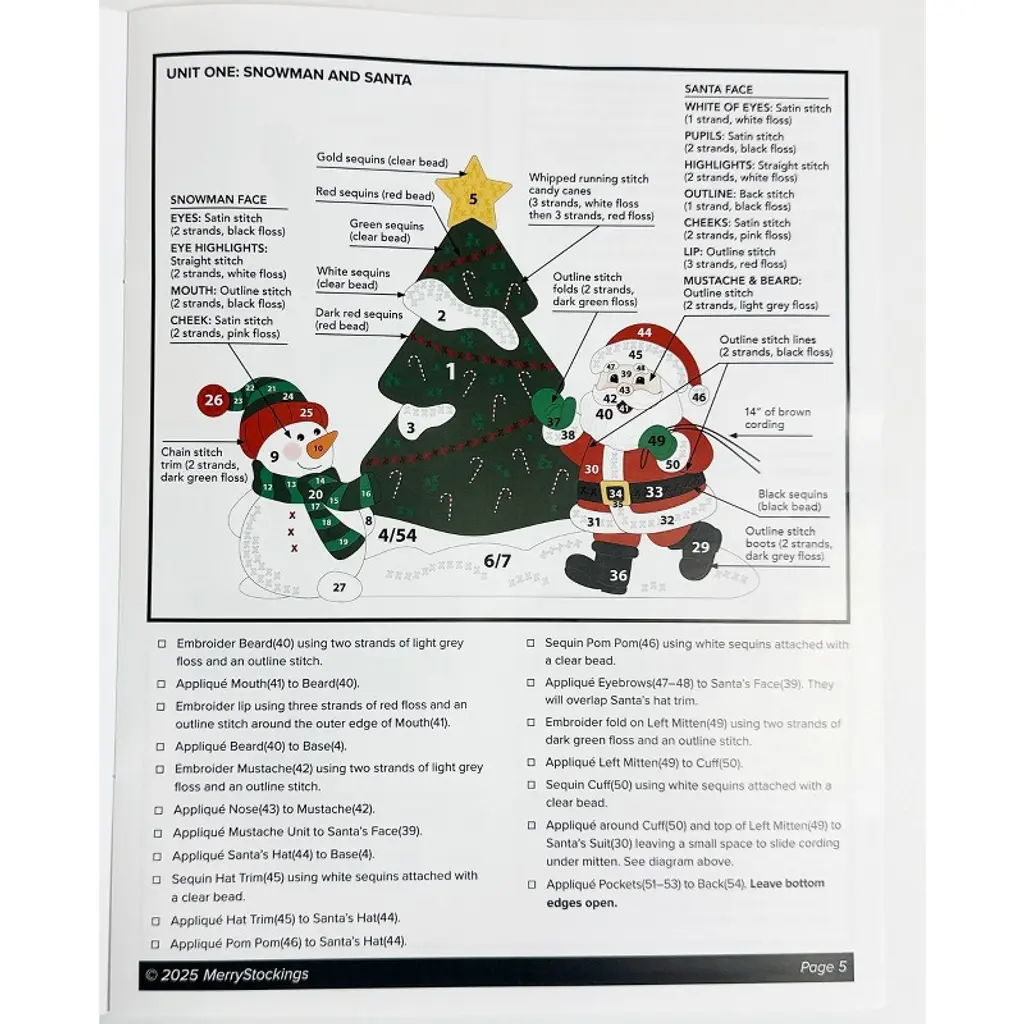 Celebrate the countdown to Christmas with this joyful felt Advent calendar, featuring Santa guiding his sleigh through a snowy scene. Numbered presents ride along in the sleigh, allowing you to swap out each day as Christmas gets closer. With detailed stitching, sparkling sequins, and charming characters like a snowman and decorated tree, this kit brings both fun and festivity to your holiday home.