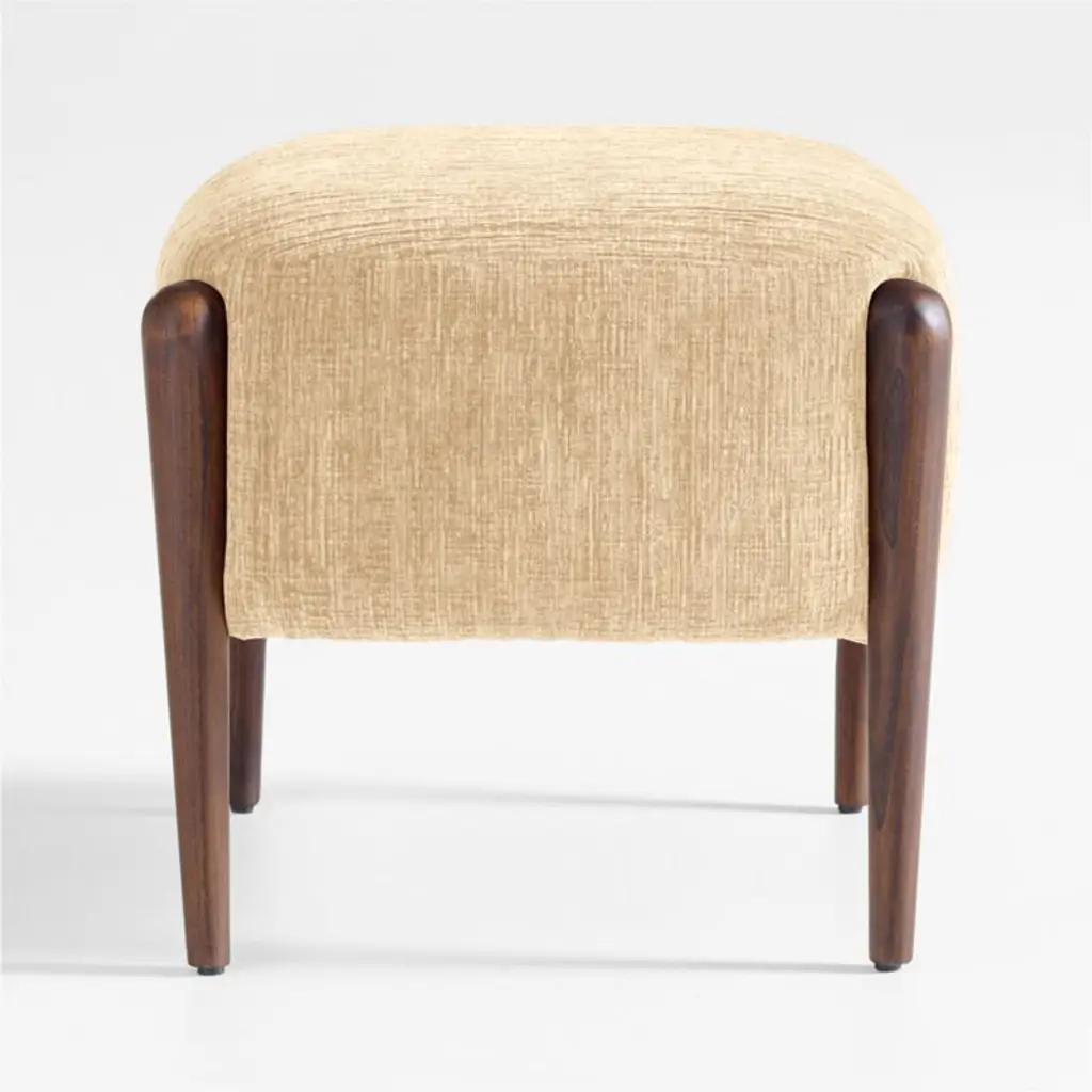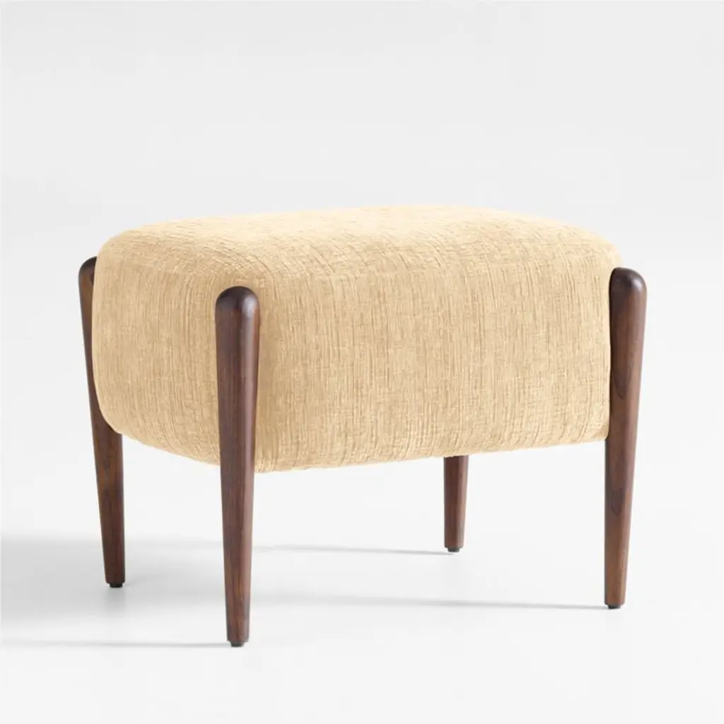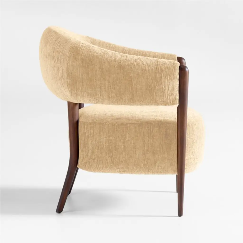 Tapered wood and soft, rounded forms add Scandinavian flavor to the contemporary proportions to our Santi chair and ottoman. Turned legs of dark walnut-finished oak frame the curved contours of the chair's barrel back. The thoughtfully cushioned seat on both the chair and ottoman provides a supportive yet comfortably soft place to relax. The plush upholstery in latte brown offers the luxe feel of chenille with striated texture for an organic look.