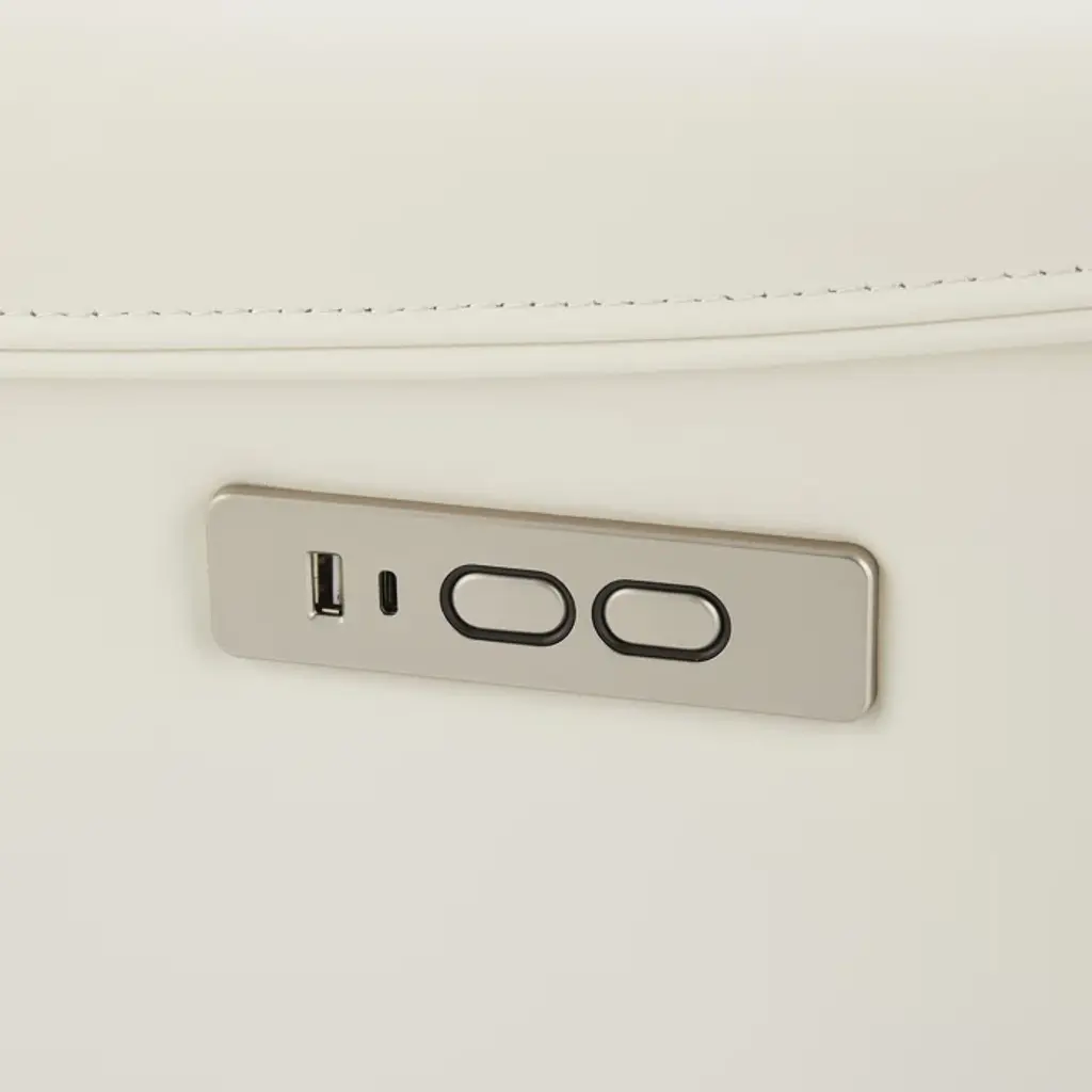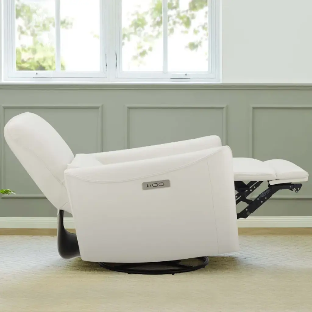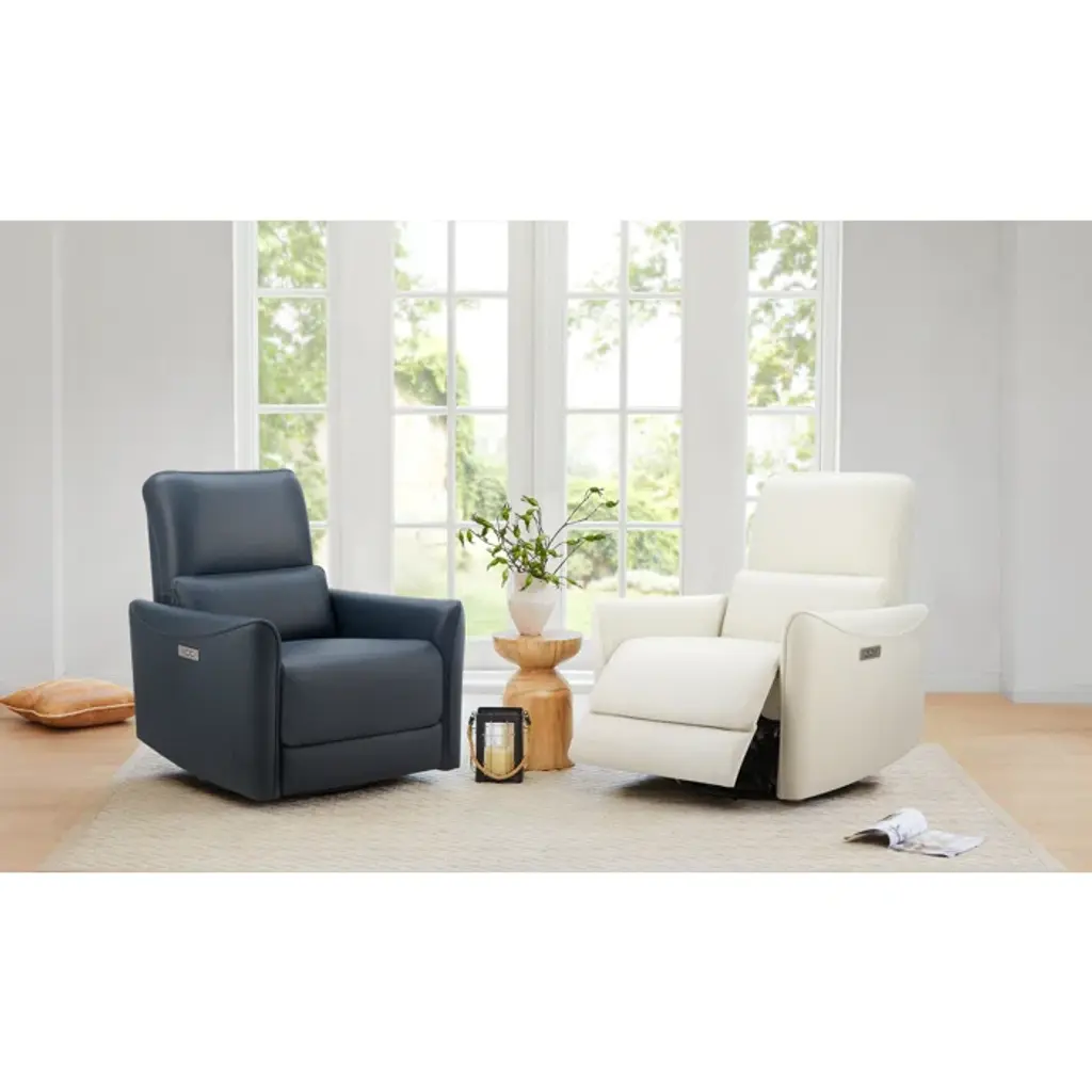 Dressed in rich, artisan-finished top-grain genuine leather, our Santo Power Recliner creates a casual yet refined seat perfect for putting your feet up. Sink-into cushions feature flanged edges for a relaxed look, while two-button motion controls allow smooth reclining and complete comfort. This power recliner combines style and function like a swivel with lumber support and a USB charger port, which makes it super cozy for your living room. Best of all, assembly is simple - just slide the back into the seat - and you're ready to go.