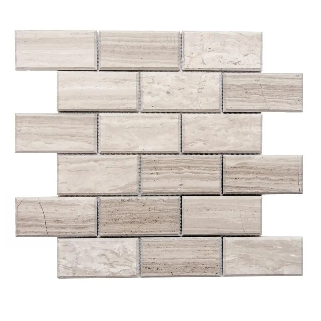 Santorini Beveled 2" X 4" Brick Marble Backsplash Wall Tile - 1 Sheet (1 Sq. Ft.) - Crema Marfil