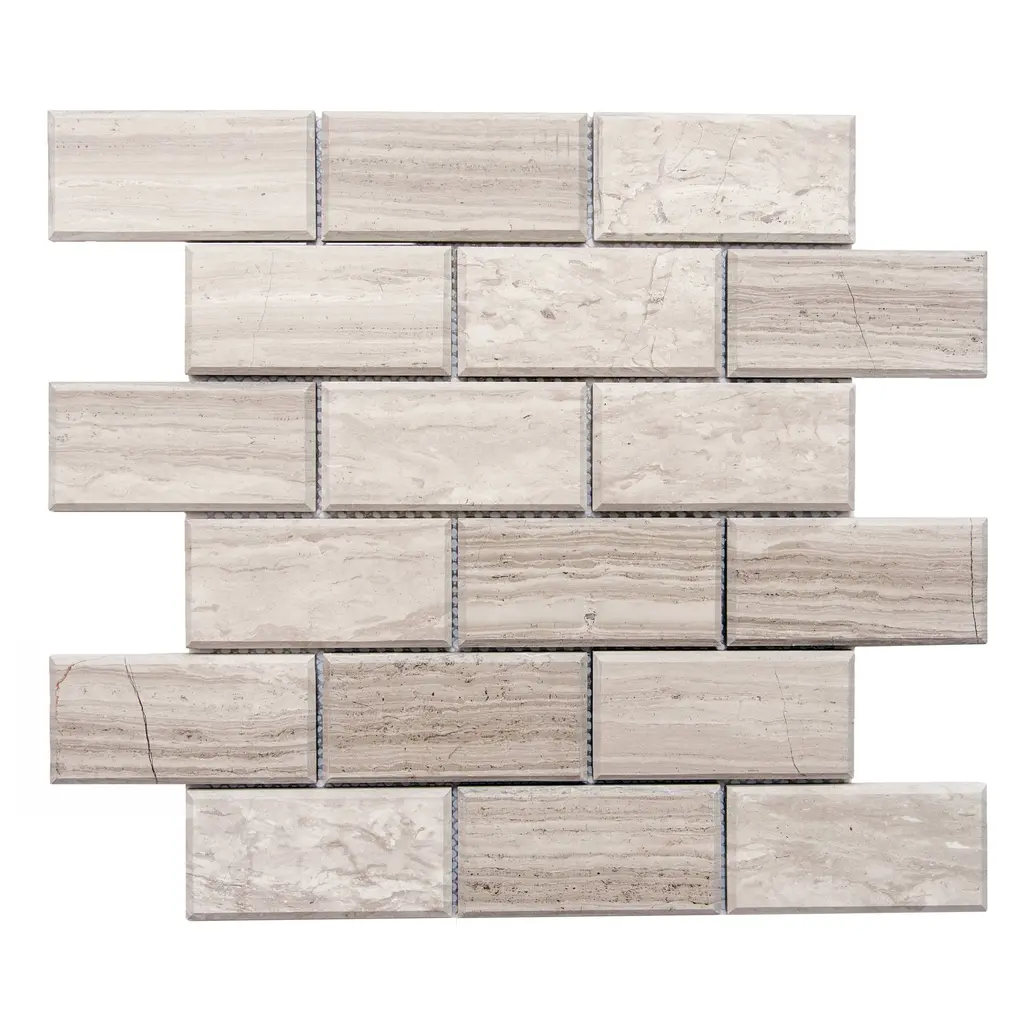 Santorini Beveled 2" X 4" Wooden White Marble Mosaic Backsplash Wall Tile - 1 Sheet (1 Sq. Ft.)