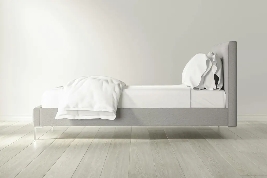 Named for the sleek supermodel of the Greek islands, the Santorini platform bed has nothing to distract from its sophisticated low profile. Its graceful legs seem to float off above the floor, giving it a minimalist feel.No foundation or box spring required.
