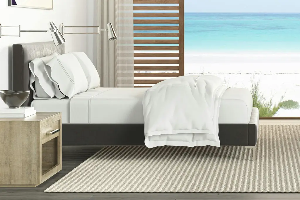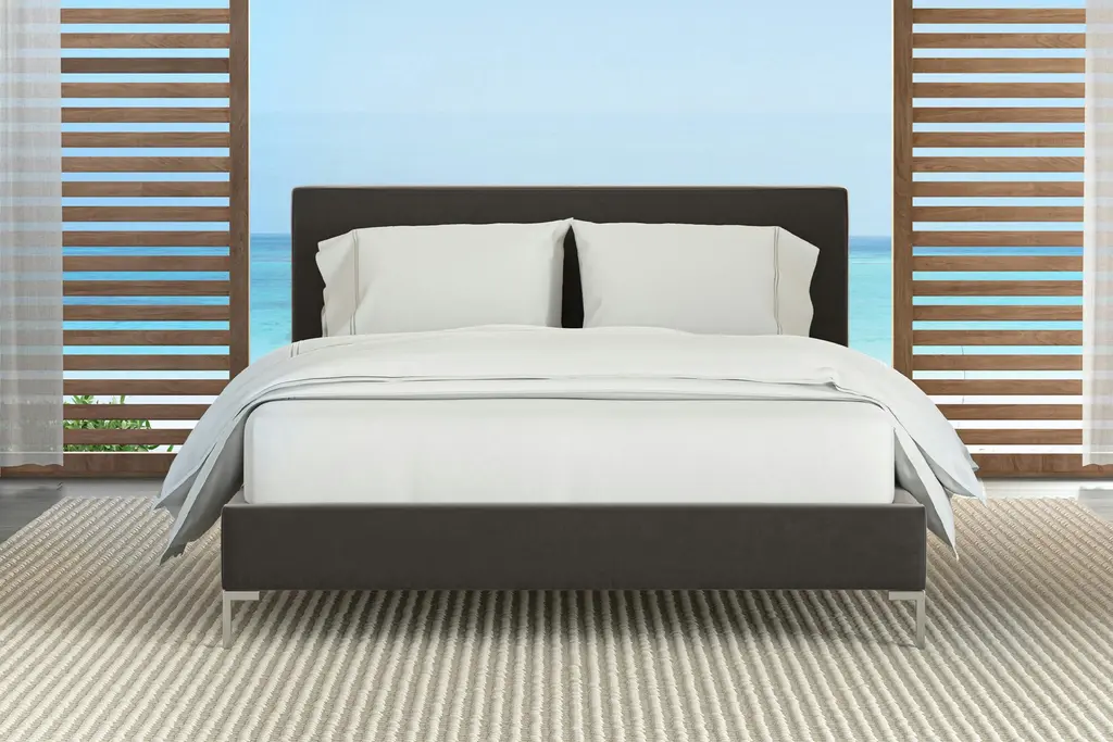 Named for the sleek supermodel of the Greek islands, the Santorini platform bed has nothing to distract from its sophisticated low profile. Its graceful legs seem to float off above the floor, giving it a minimalist feel.No foundation or box spring required.