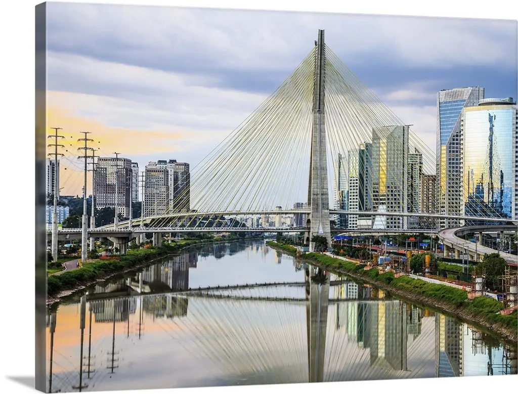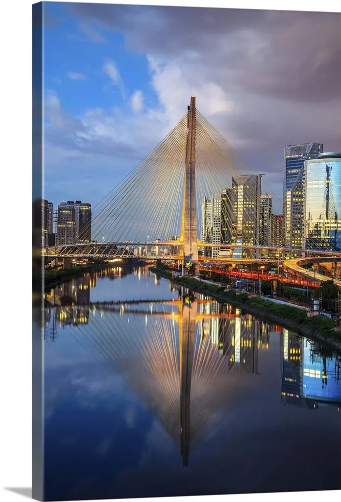 Sao Paulo Landmark At Dusk. Octavio Frias De Oliveira Stayed Bridge