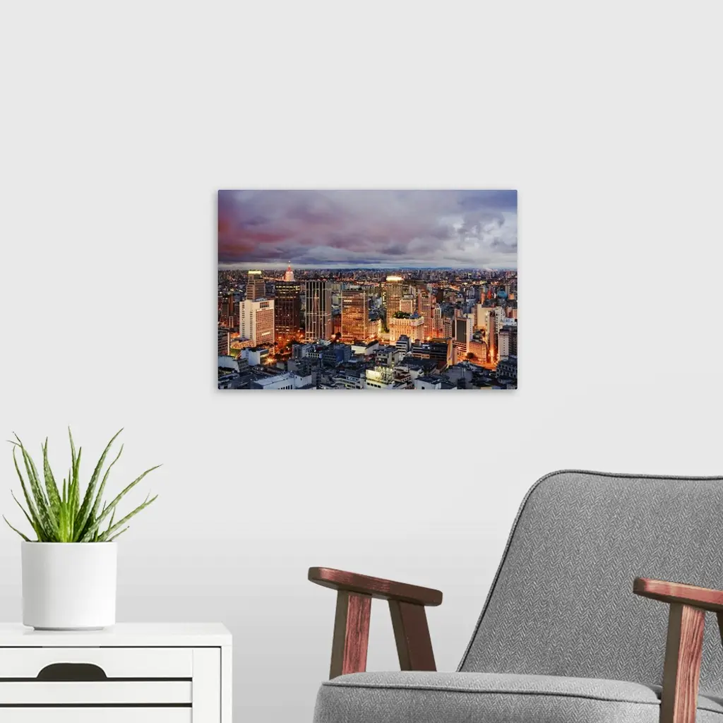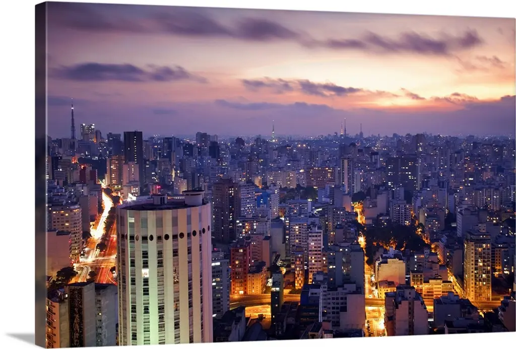 Sao Paulo skyline at dusk wall art for home and office decor. Discover canvas art prints, photos, mural, big canvas art and framed wall art in GreatBigCanvas.com's varied collections.