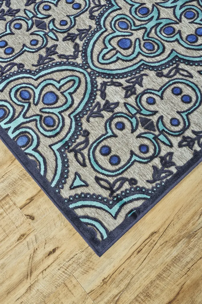 Saphir Callo Modern Damask - Tan/taupe/blue - Clearance - 7'6" X 10'6" Rectangle