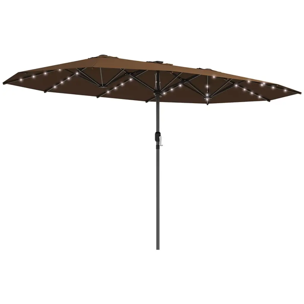 Sapphtopaz 15×9ft Patio Umbrella Outdoor Rectangular Led Umbrellas Waterproof Umbrella With Crank And Base For Garden, Beach, Pool, Backyard, Taupe