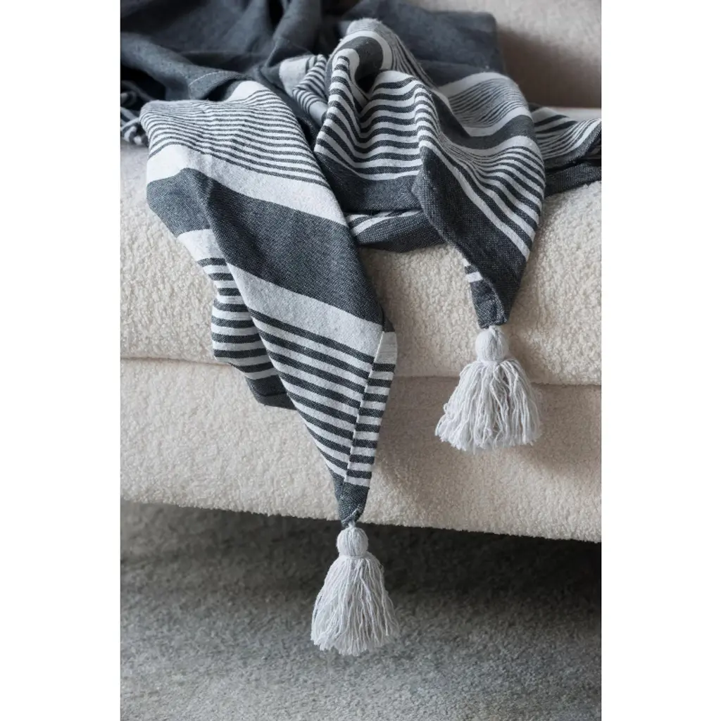 Sapphtopaz 2 Pack Cotton Throw Blanket With Tassels, All Seasons Comfort Throw Blanket, 50x60", Blanket For Living Room Or Bedroom, Black & White