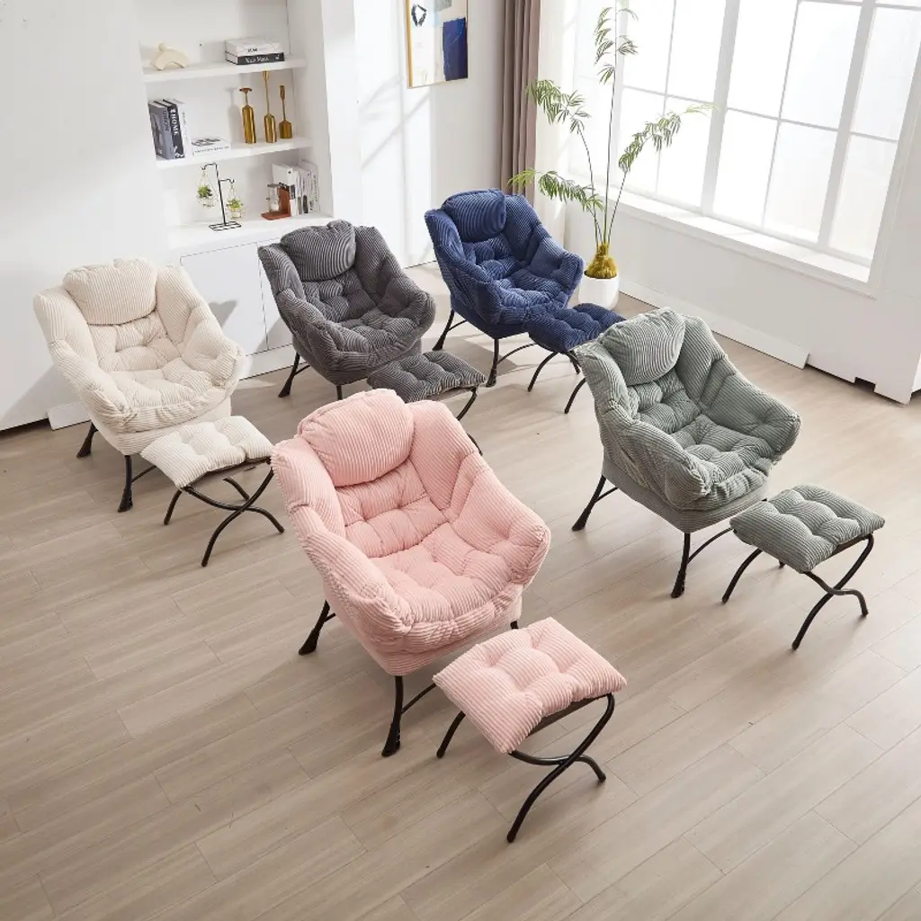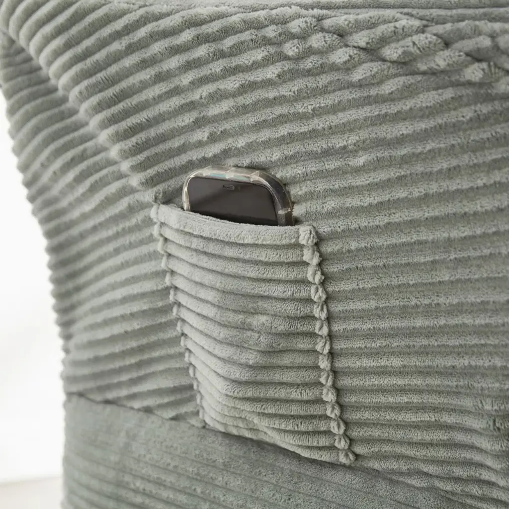 This chair is filled with environmentally friendly PP cotton, which is full and fluffy and will not collapse after sitting for a long time. The soft elastic support is just right. Equipped with a detachable footstool of the same material, one-button switch to reclining mode or as an independent footrest in the living room, one thing with multiple uses is super flexible. The backrest fits the curvature of the spine, and you won’t feel tired when sitting for a long time. The hidden storage bag on the side can hold mobile phones and magazines, which is convenient to use and does not mess up the space. The thickened galvanized steel frame is equipped with an anti-rust coating, and the bottom silicone anti-slip pad is stable and protective. The detailed design is practical and considerate.
