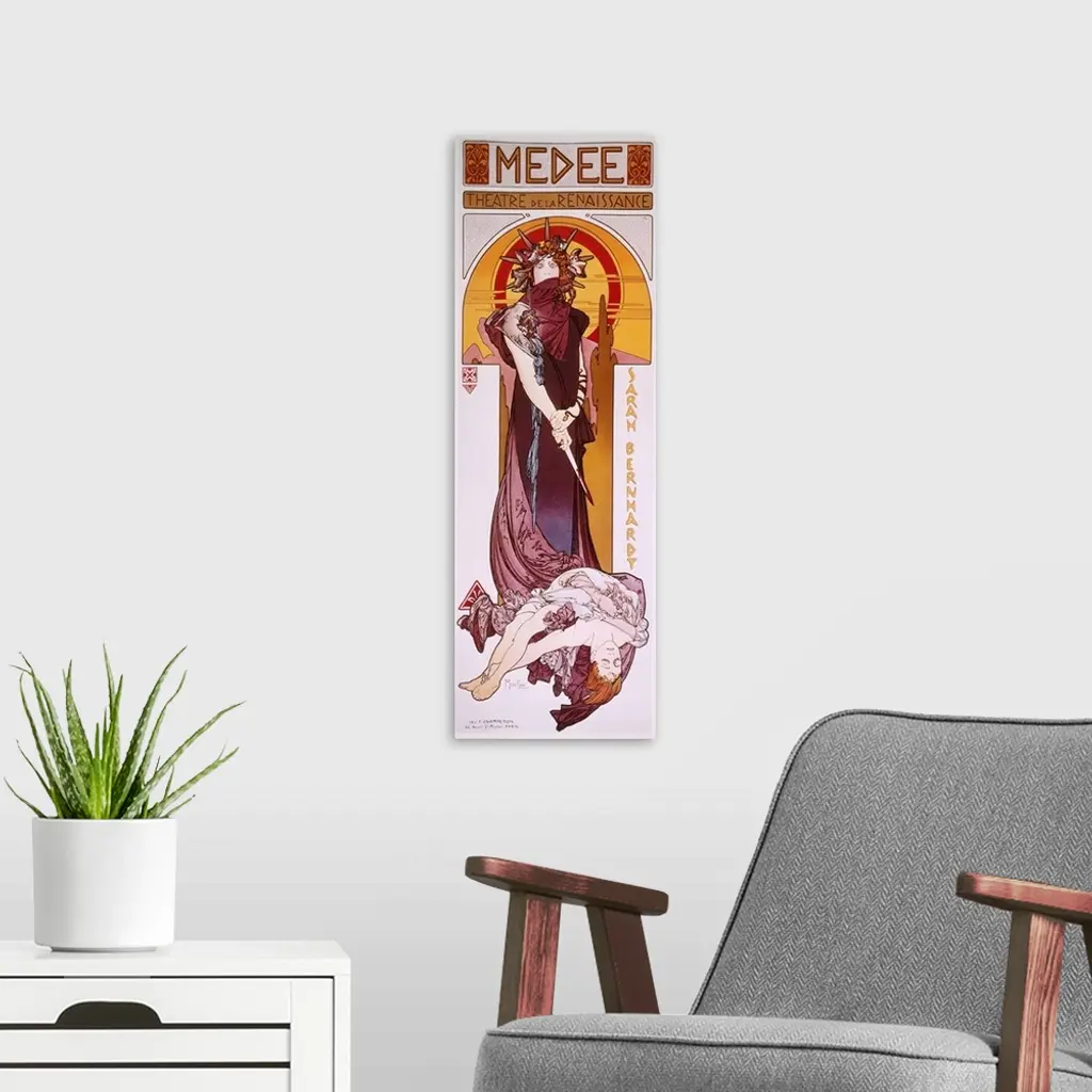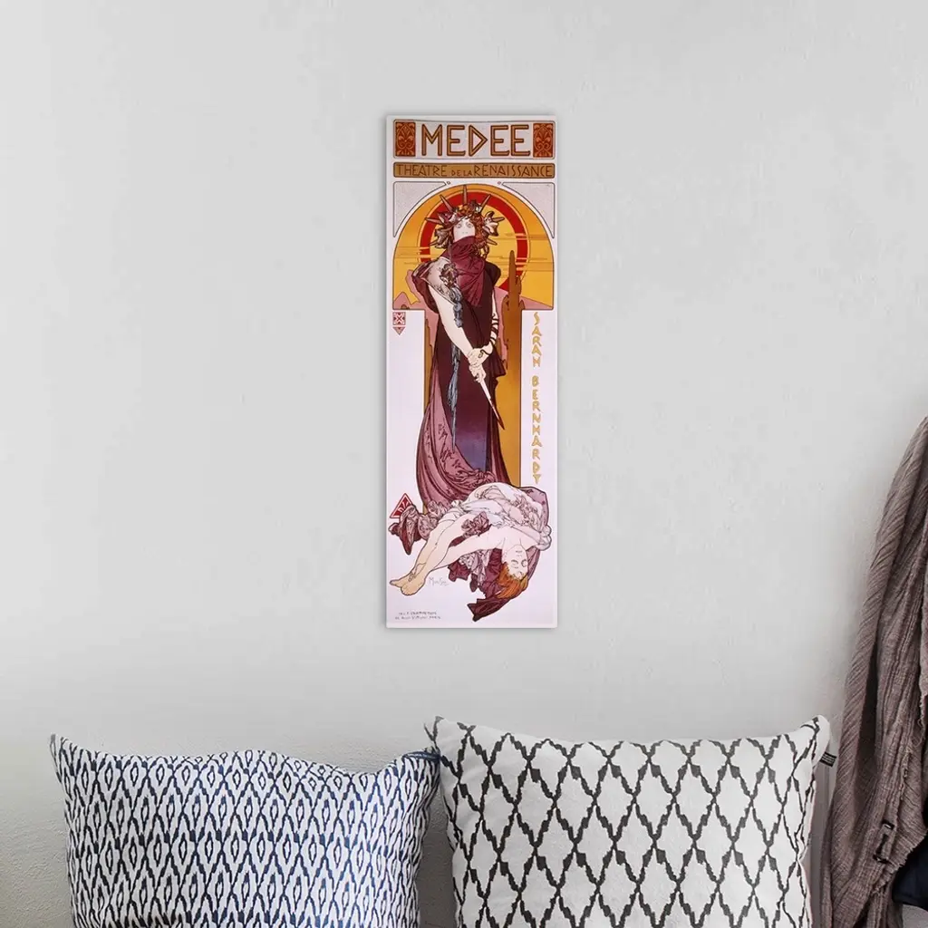 Bernhardt on a lithograph poster by Alphonse Mucha, 1898, depicted in the title role of a production of 'Medee' at her Theatre de la Renaissance, Paris.