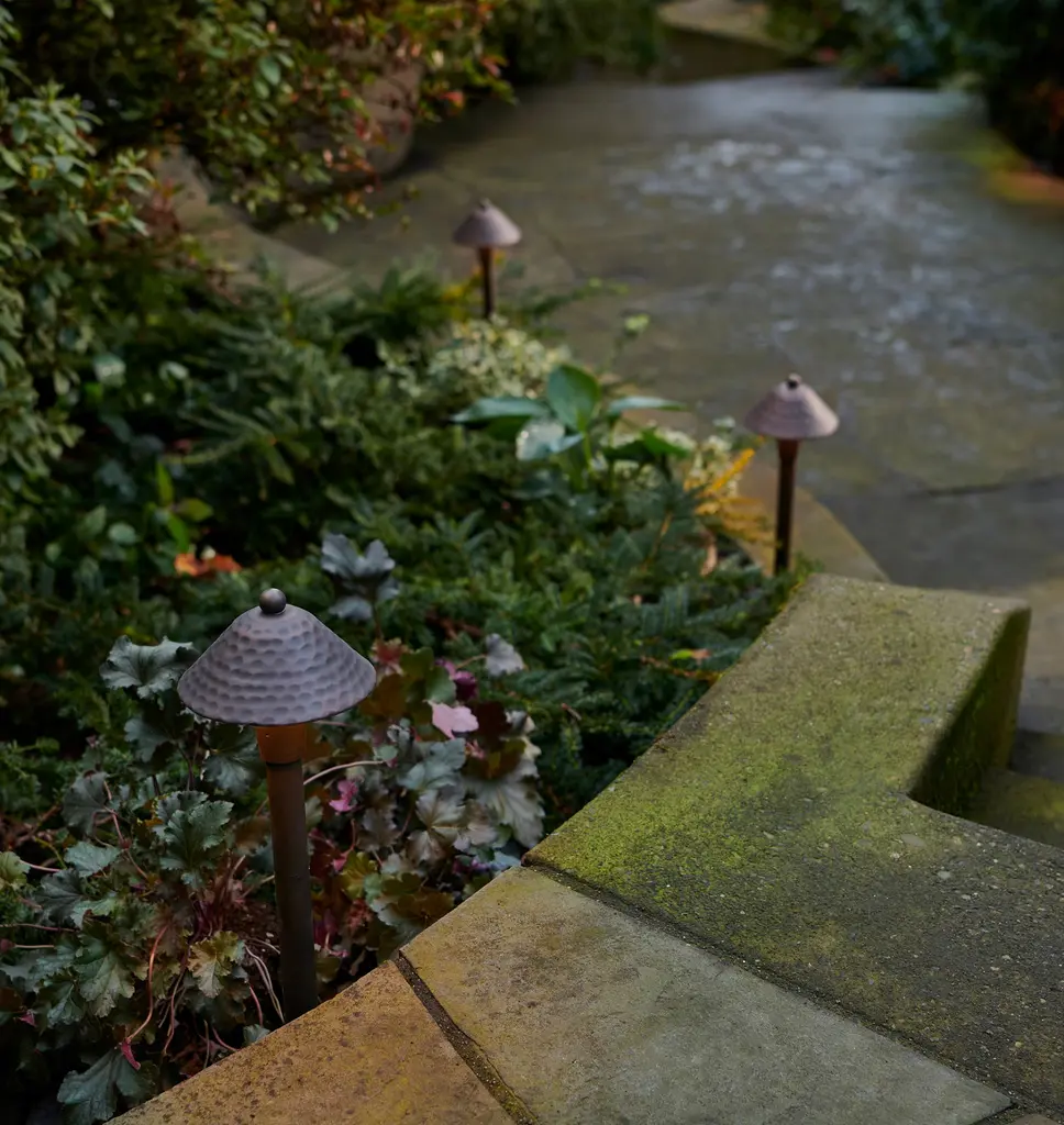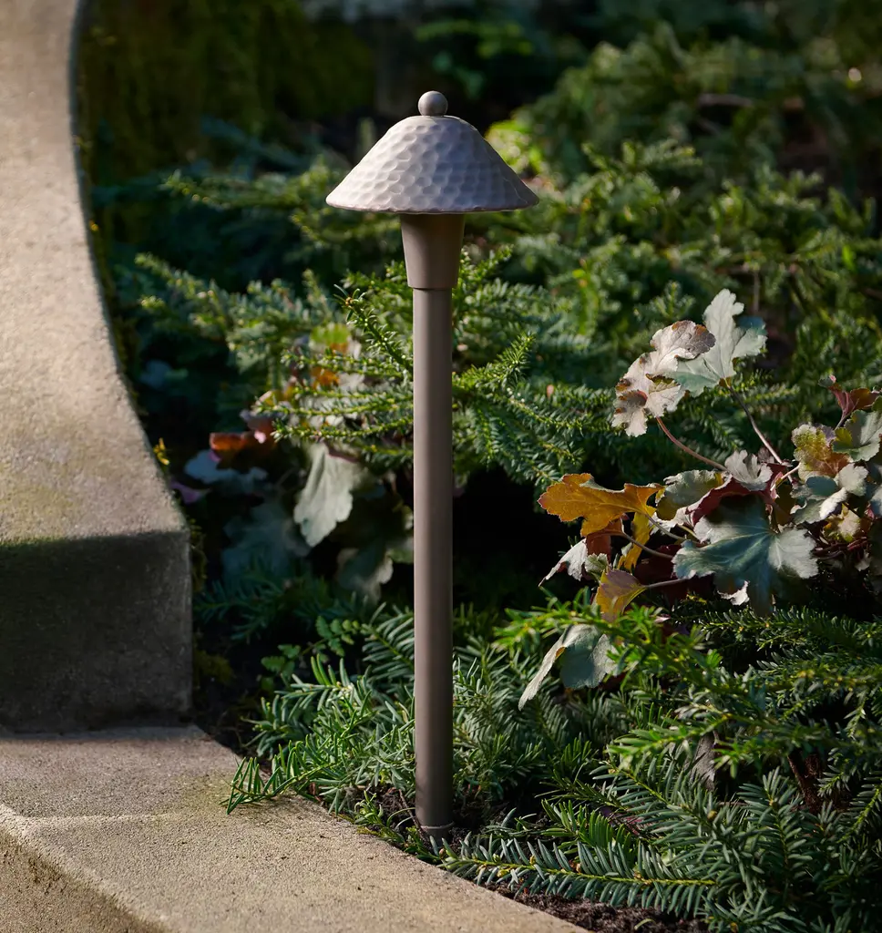 Petite but powerful, our path lights cast a warm welcome in your garden, drive, or entry. The Saratoga's simple silhouette and classic style works well with most exterior aesthetics. With an efficient integrated LED light and a versatile finish and hammered texture, they're built to light the way home for seasons to come.