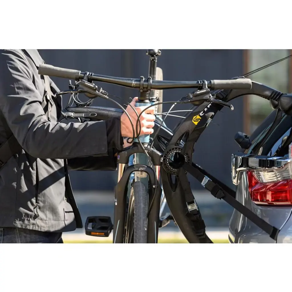 A Leg Above the Rest. The Bones trunk bike cargo rack made a name for itself in the mid-90s, and 25 years later it’s doing it again. How? By expanding its vehicle compatibility to fit 20% more of the most popular vehicles, including those with spoilers. Featuring a unique arched leg, the Bones EX bike rack for SUV without hitch gracefully avoids contact with most plastic spoilers found on many of the best-selling sedans, hatch backs and SUVs. This simple, yet game-changing design on our trunk mount bike rack by Fabio Pedrini transformed the iconic trunk bicycle cargo rack into one that could fit 90% of the top 50 vehicles sold in the USA. Equipped with premium bike hold downs and a streamlined strap management system, the Bones EX bike rack for truck is penning its own chapter in history books. It is not only easy to use, but this strong bike holder for car carries up to 2 bikes (35lb/bike). And just like its legendary predecessor, the Bones EX trunk bike rack for car is made in Madison, Wisconsin, USA, with locally sourced materials that’ll last a lifetime.