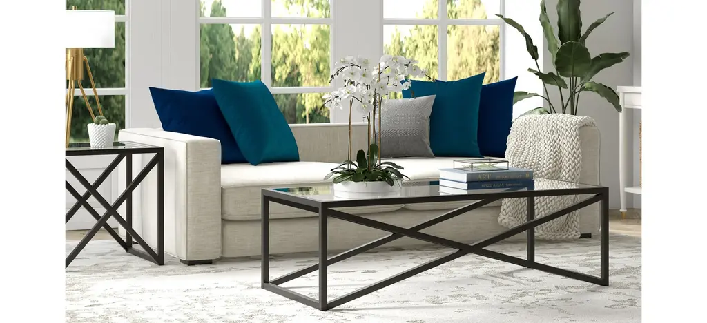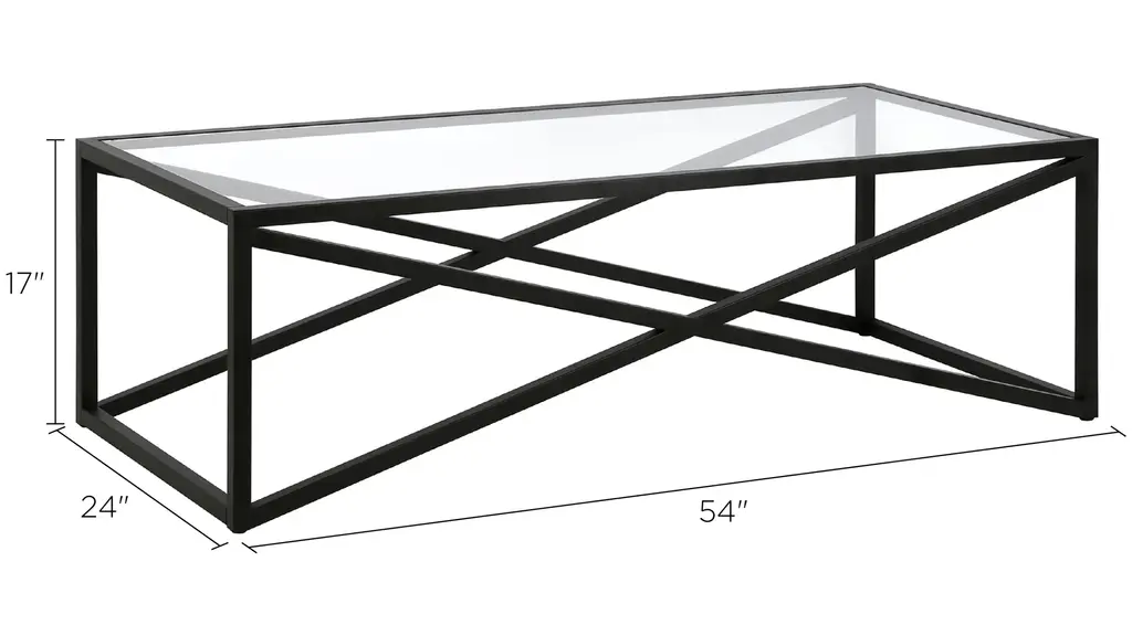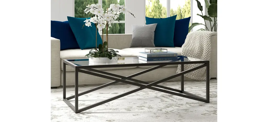 This urban-inspired Sarmento coffee table is the perfect pick for your modern living room or den ensemble. Its base features x-shaped legs, creating geometric interest. The durable tempered glass tabletop shows off the architectural connection and carries the structured design through the frame.