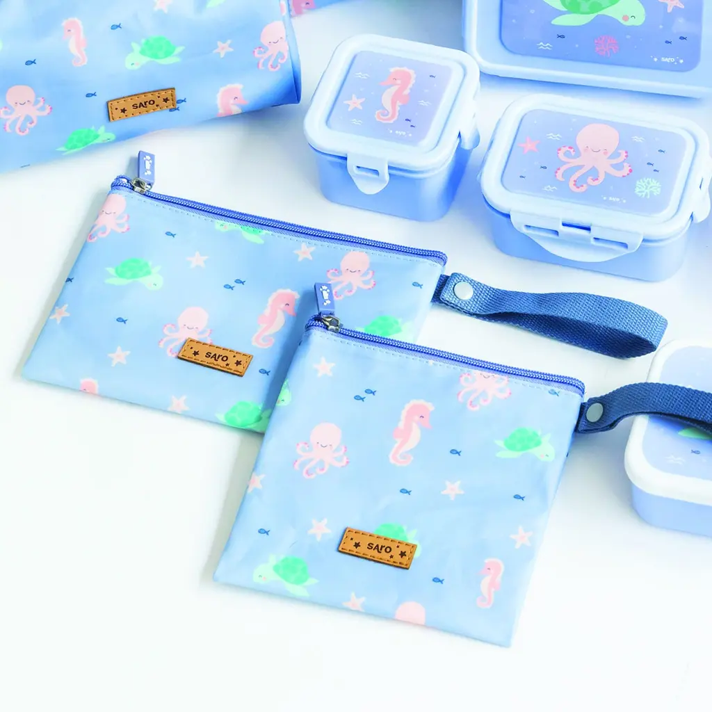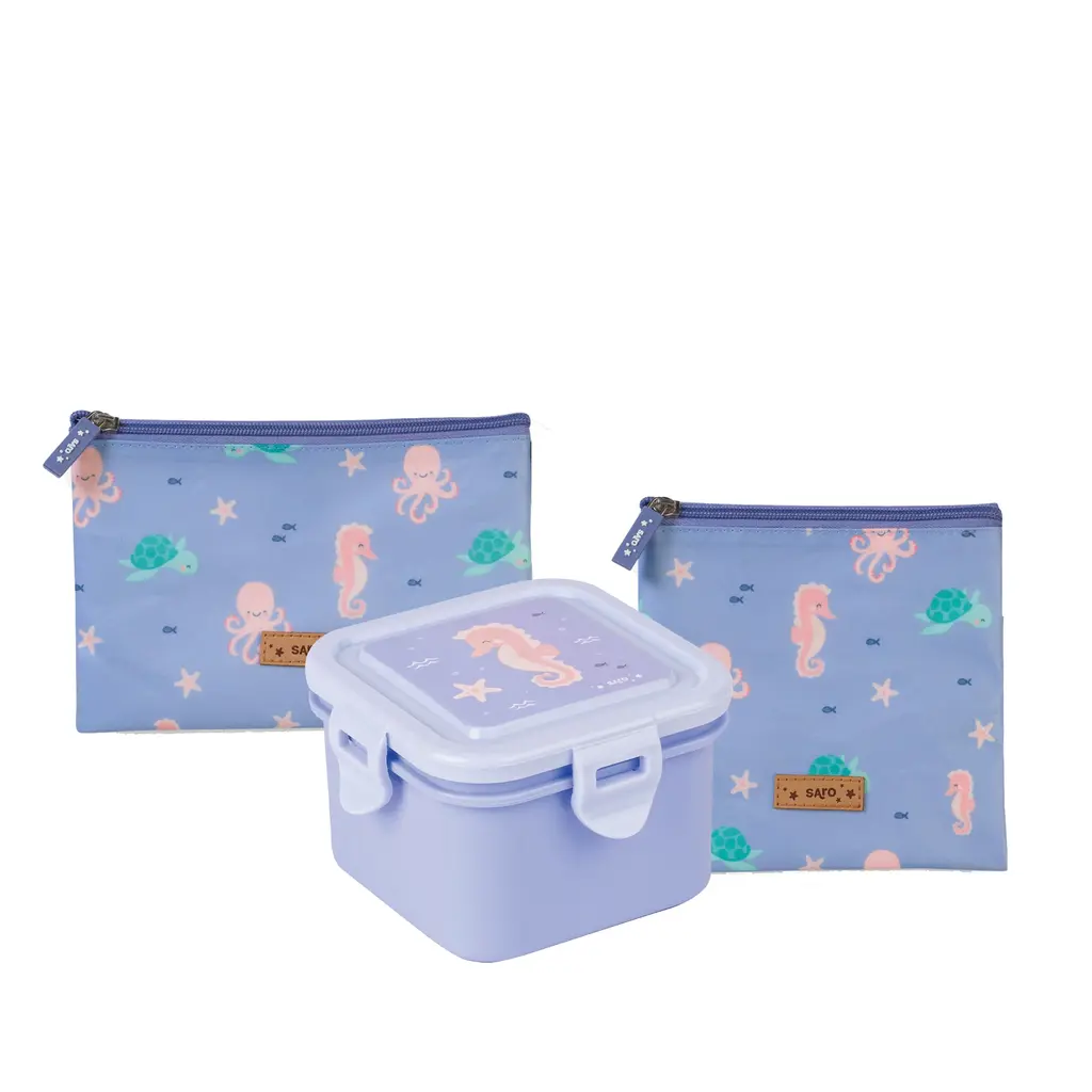 Make Snack Time Sustainable with Our Reusable Lunch Essential Set! Say goodbye to single-use plastics and hello to eco-friendly convenience! Our Reusable Lunch Essential Set is the perfect way to enjoy your snacks, meals, and adventures while reducing waste. This set includes: Vertical Food Bag (7" x 7"): Ideal for small snacks or sandwiches. Horizontal Food Bag (8.7" x 5.9"): Great for larger snacks or leftovers. 9.5 oz Airtight Lunch Box: Keeps food fresh with a secure, leak-proof lid. Made from safe, non-toxic materials like recycled RPET plastic and food-grade PEVA, this set is: Reusable & Durable: Designed to last, helping you cut down on disposable packaging. Waterproof: Keeps your food protected from spills and leaks. Microwave Safe (without lid): Convenient for reheating meals on the go. Dishwasher Safe (Top Rack): Easy to clean and reuse every day. Whether you're packing lunch for school, a hike, or a road trip, this bundle is the sustainable choice. Keep your snacks fresh, your meals secure, and your planet happy! 🌍 Go Green, Snack Smart, and Make a Difference!