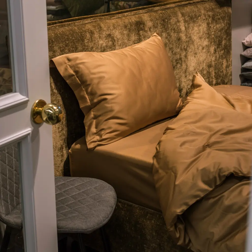 Solid Cinnamon is an extremely luxurious, long-lasting and soft, 100% sateen bed linen set reminds of childhood, will go well with the beige interior.The long-fiber cotton sateen with a TC300 weaving density is designed for durability. Cotton sateen is a natural material with a natural shine, soft to the touch, and very easy to care for.