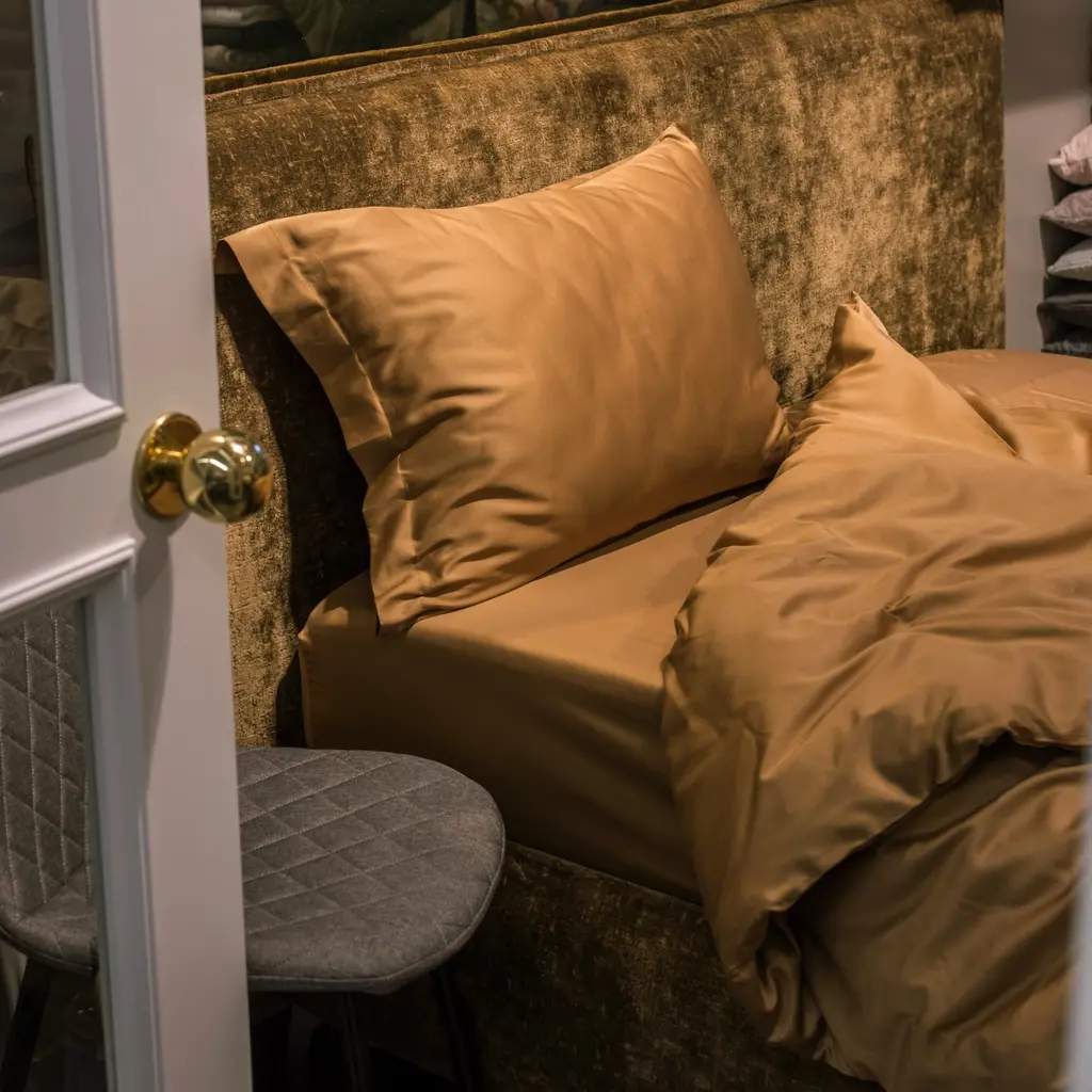 Solid Cinnamon is an extremely luxurious, long-lasting and soft, 100% sateen bed linen set reminds of childhood, will go well with the beige interior.The long-fiber cotton sateen with a TC300 weaving density is designed for durability. Cotton sateen is a natural material with a natural shine, soft to the touch, and very easy to care for.