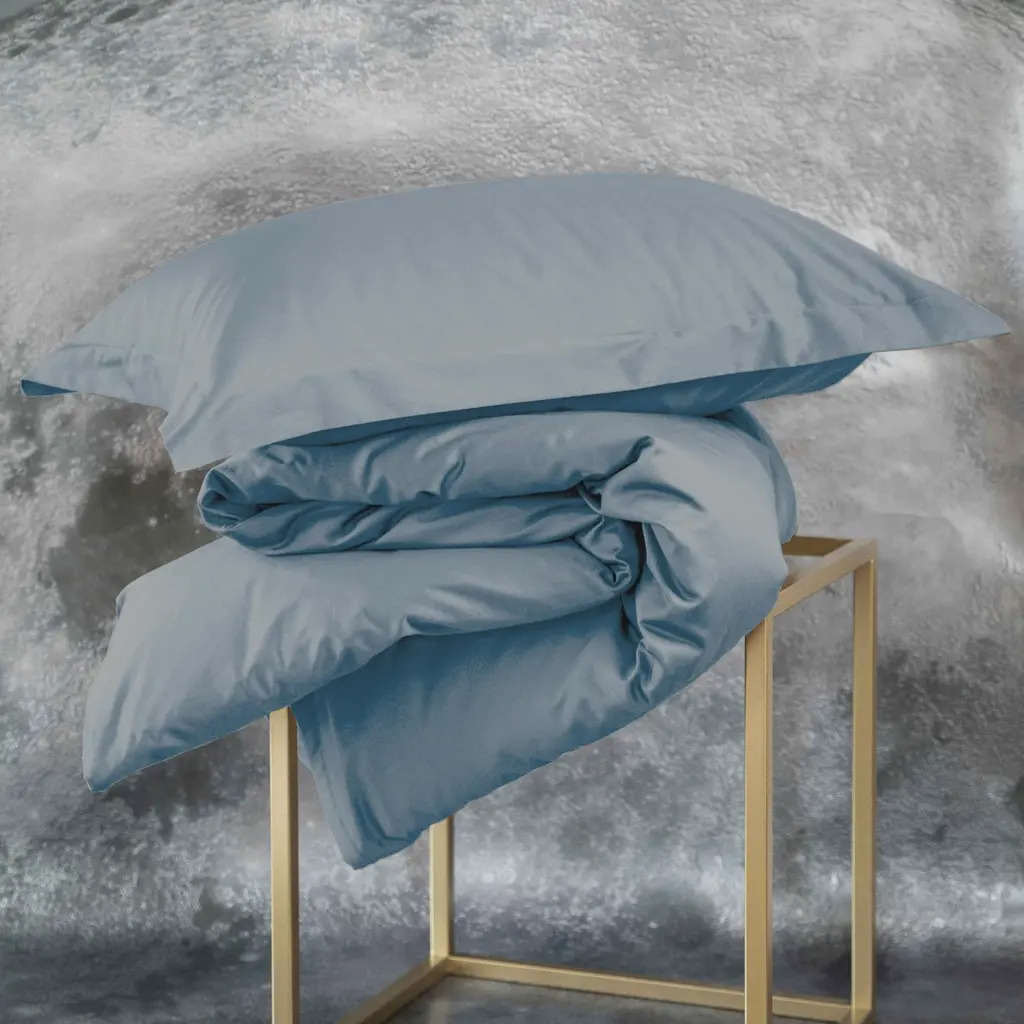 Sateen Bed Linen Set Solid Blue Bell Uk Double, Us Full