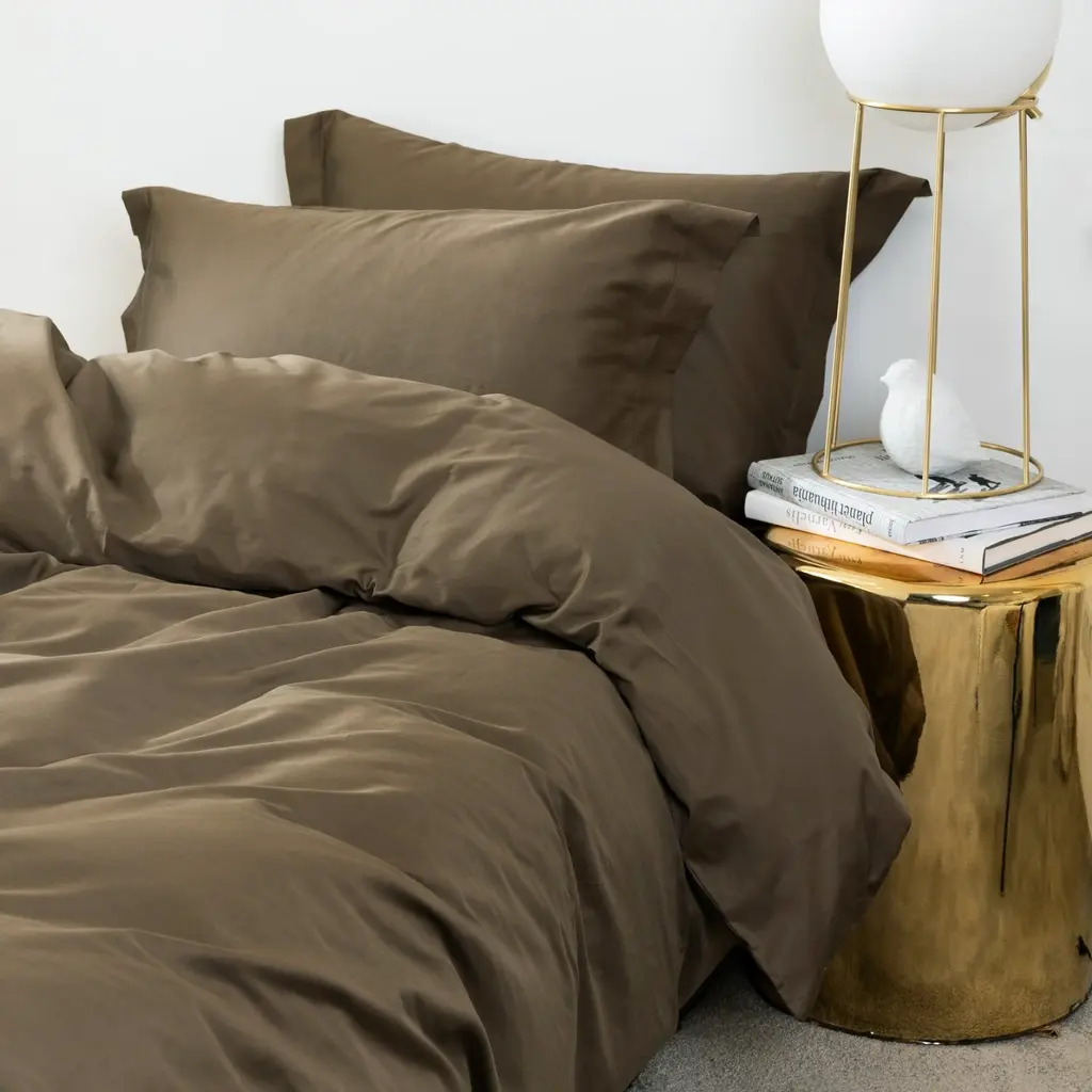 Sateen Bed Linen Set Solid Khaki Uk Double, Us Full