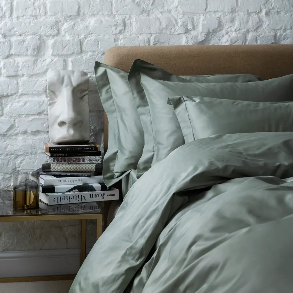 Sateen Bed Linen Set Solid Salvia Uk Double, Us Full