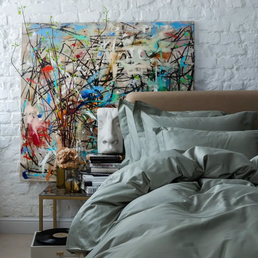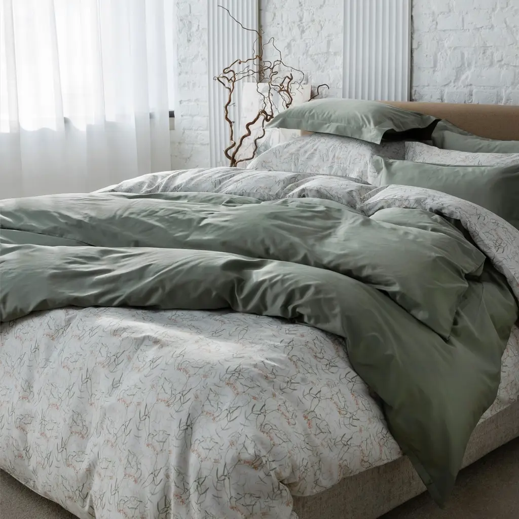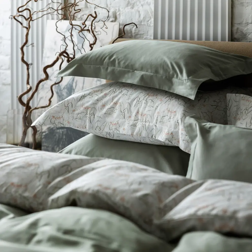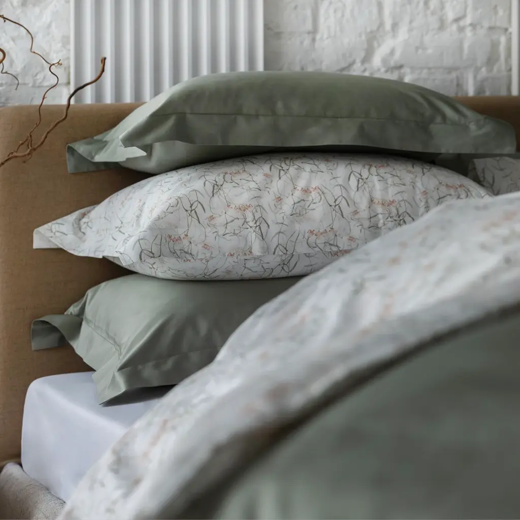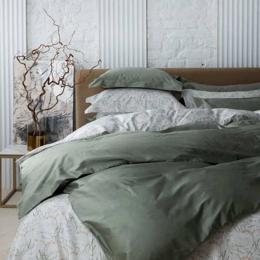 Solid Salvia will add a subtle elegance and calm to your bedroom. This soft, natural greenish tone evokes the freshness and harmony of nature, creating a cozy and luxurious space for relaxation.The long-fiber cotton sateen with a TC300 weaving density is designed for durability. Cotton sateen is a natural material with a natural shine, soft to the touch, and very easy to care for.