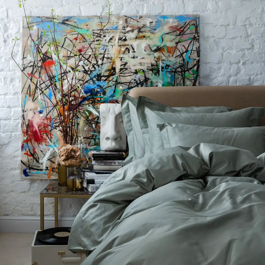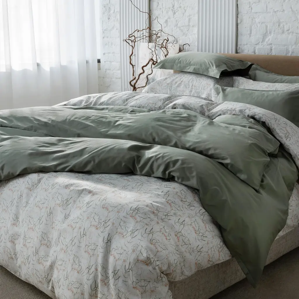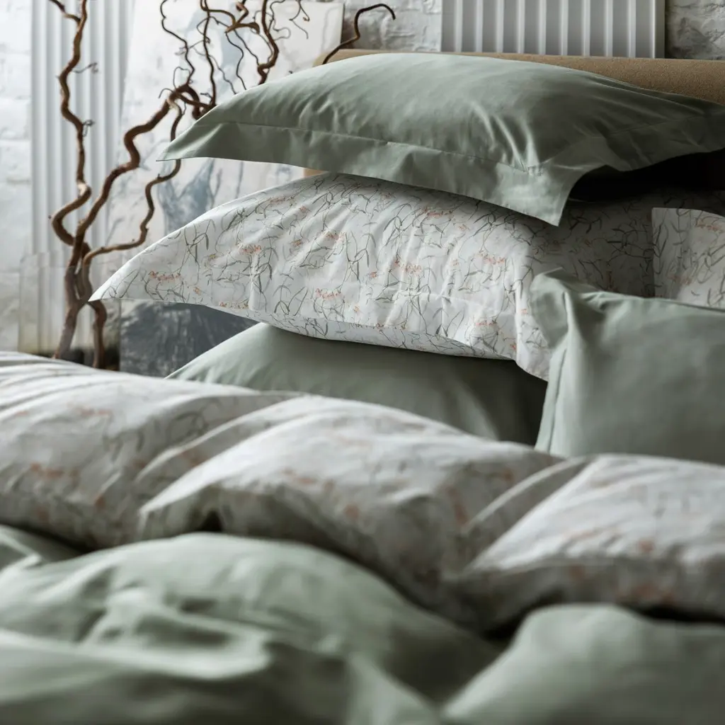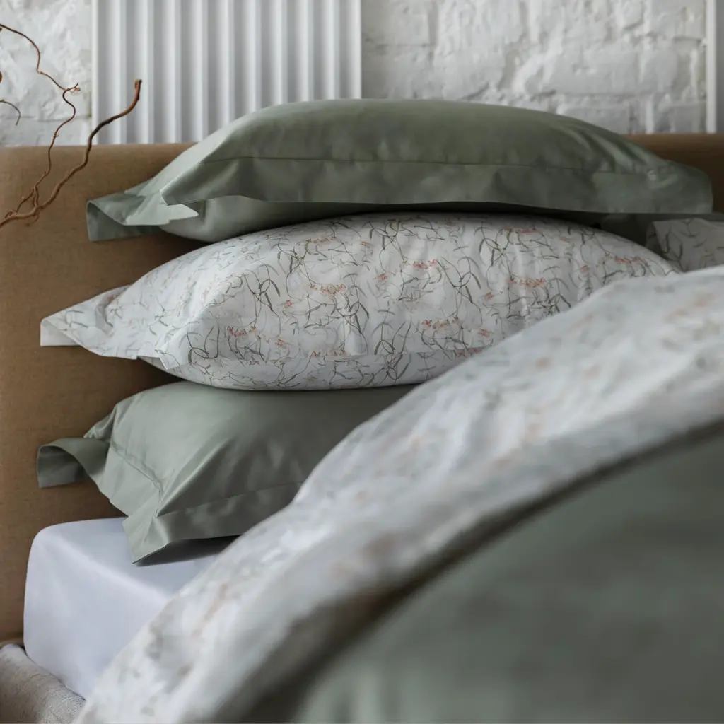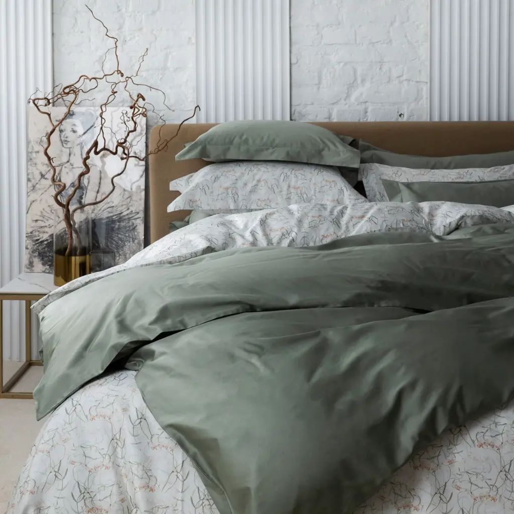 Solid Salvia will add a subtle elegance and calm to your bedroom. This soft, natural greenish tone evokes the freshness and harmony of nature, creating a cozy and luxurious space for relaxation.The long-fiber cotton sateen with a TC300 weaving density is designed for durability. Cotton sateen is a natural material with a natural shine, soft to the touch, and very easy to care for.
